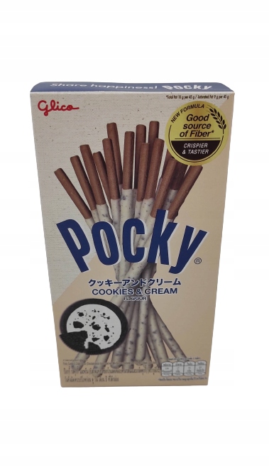 Pocky Cookies со вкусом сливок 45г. - Вкусные хрустящие зерновые палочки, покрытые глазурью со вкусом печенья.