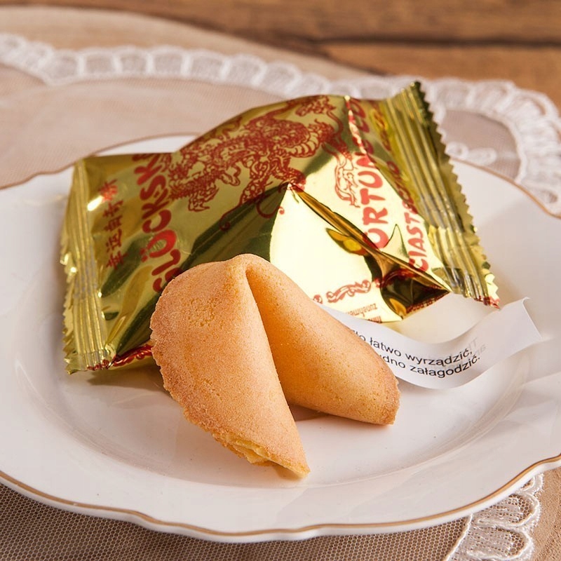 - на печенье написано состояние на двух языках: на одной стороне — на польском, а на другой — на английском.