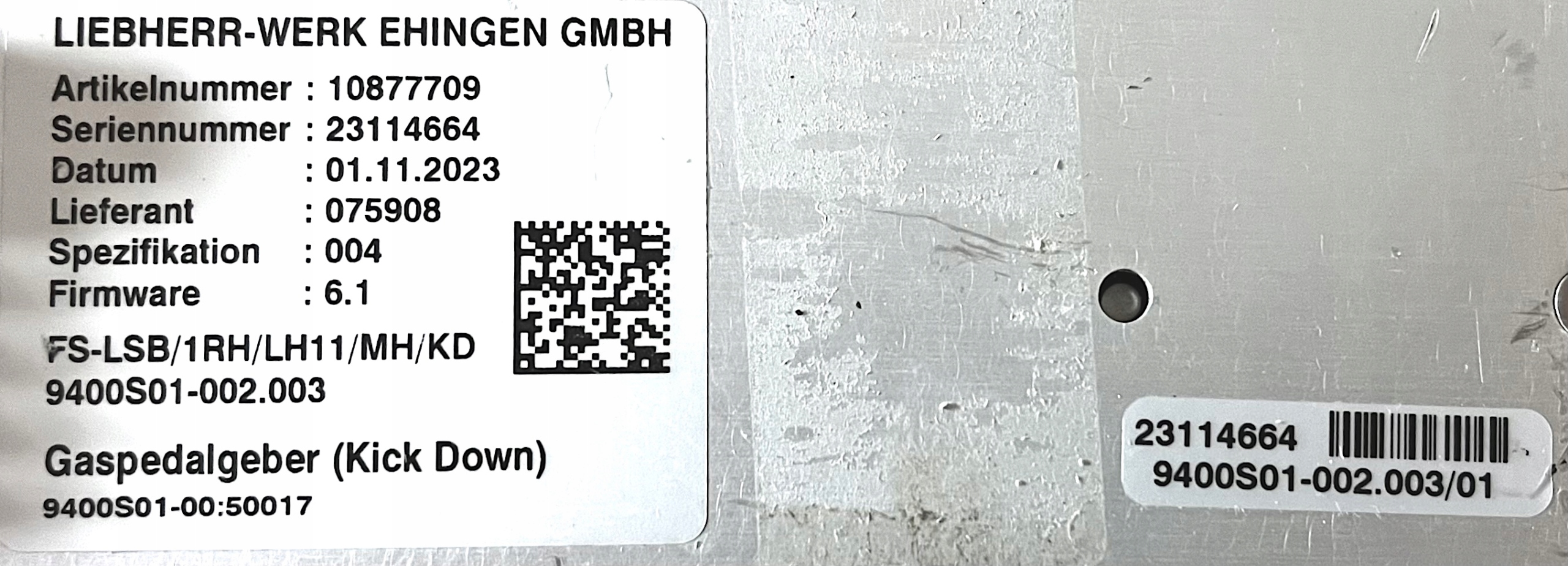 Педаль Liebherr 10877709 FS-LSB/1RH/LH11/MH/KD 9400S01-00: 01021