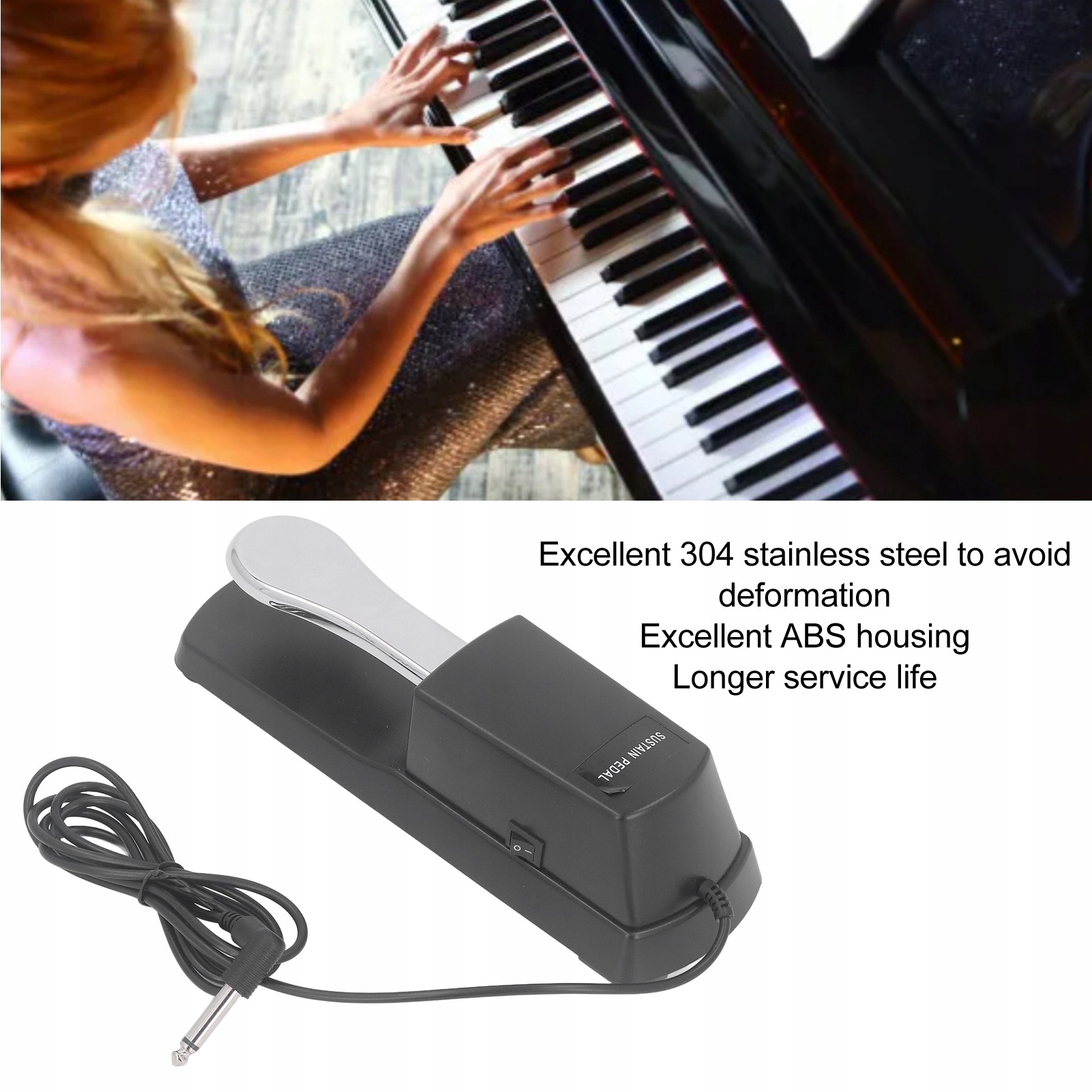 1. Надежная совместимость: на стороне педали имеется переключатель полярности с входным разъемом 1/4 дюйма (6,35 мм), подходящий для различных фортепиано или клавишных инструментов
