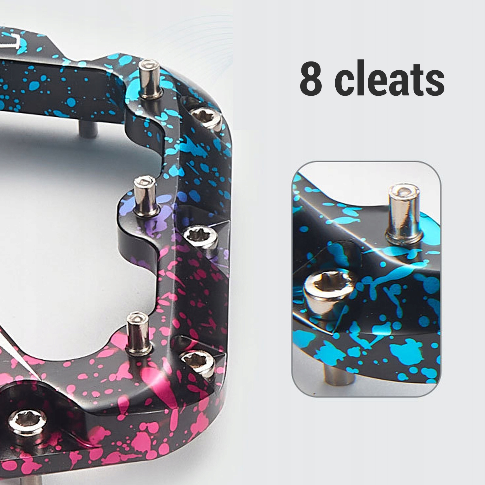 5. 8 штифтов против проскальзывания: каждая сторона педалей плоского дорожного цикла оснащена 8 булавками от проскальзывания, обеспечивая отличную адгезию, чтобы сохранить скорость безопасности в влажных или грязных условиях, снижая риск скольжения. Кроме того, супер тонкий пустой дизайн не только снижает общий вес, но и увеличивает воздушный поток, способствуя более легким и более удобному велосипедным опыту.