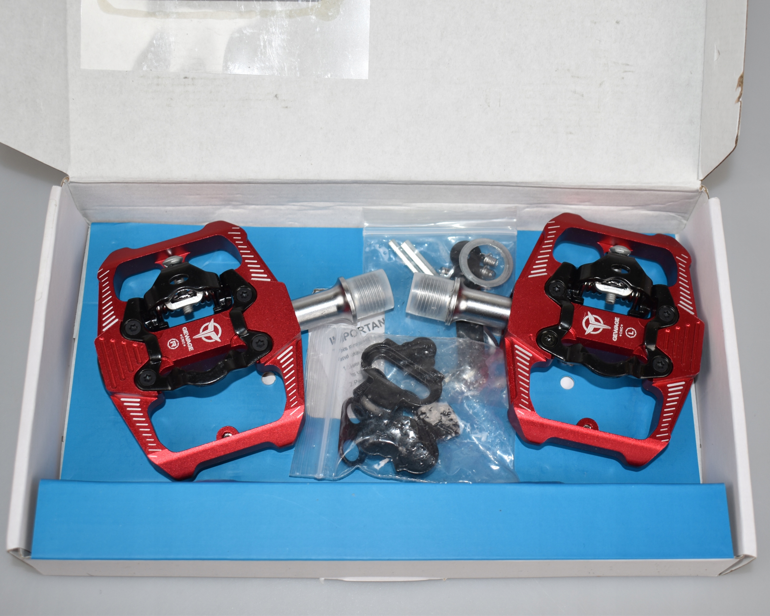 · 【ВЫСОКОКАЧЕСТВЕННЫЙ КОРПУС С ЧПУ】 - Педали для горного велосипеда с широкой платформой, изготовленной из интегрированного корпуса из алюминиевого сплава с ЧПУ. Прочный, износостойкий и устойчивый на беззащелкивающейся и плоской стороне. Сменные шипы для дополнительного сцепления.