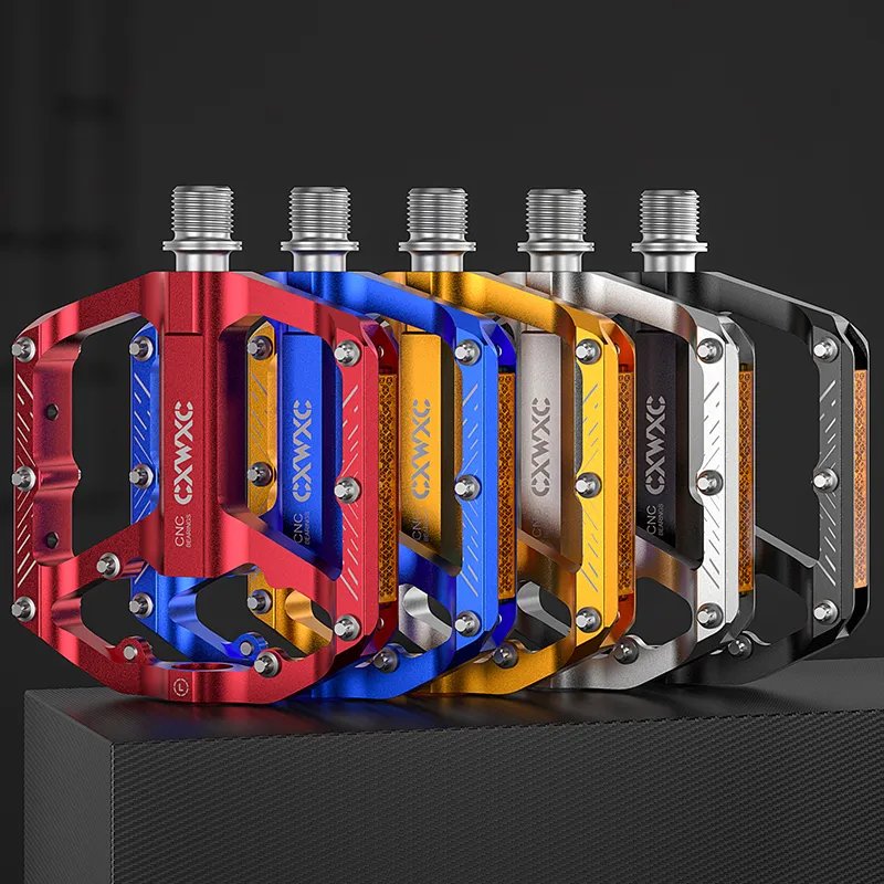 Педали из анодированного алюминия, ось Cr-mo. Ударопрочная конструкция, легкая, 320 г (пара), размеры 98х97(117) мм. Они имеют 3 картриджных подшипника и благодаря плотно закрытому корпусу устойчивы к внешним воздействиям. Большая поверхность и 8 сменных звездочек с каждой стороны обеспечивают очень хороший контакт с обувью. Оснащен отражателями для повышения безопасности.