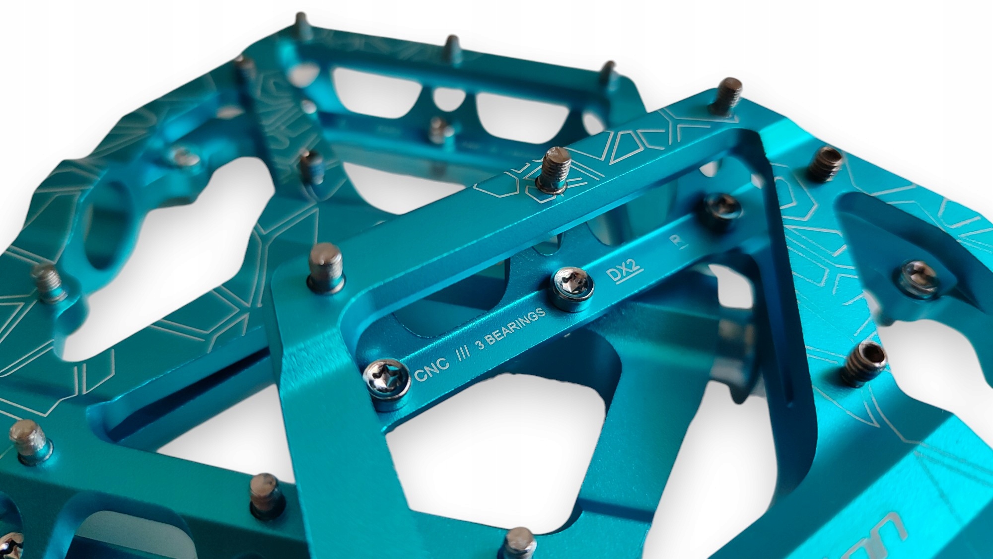 Bicyclone DX2 — новейшая версия серии платформ DX. Модель DX2 отличается увеличенной платформой и повышенной прочностью за счет утолщенных критических участков. Также были добавлены два контакта на страницу. Это по-прежнему легкая алюминиевая конструкция на прочной хромомолибденовой оси. Платформа вращается на трех картриджных подшипниках, что обеспечивает невероятную плавность хода, жесткость и долговечность. С каждой стороны платформы имеется по 9 штифтов, отвечающих за сцепление обуви. Все пины сменные, откручиваются ключом Torx, в комплект входят четыре дополнительных пина. Установка с помощью шестигранного ключа на 8 мм.