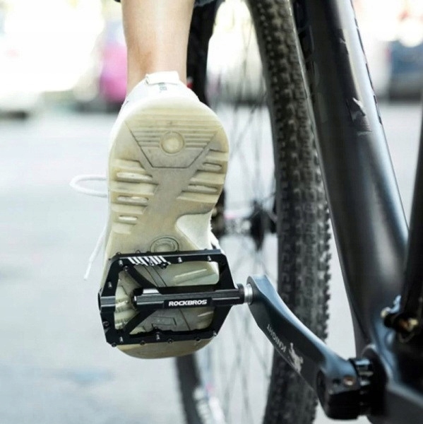 Прочные и сильные велосипедные педали Rockbros, изготовленные из алюминия и оснащенные специальными булавками, которые увеличивают адгезию между поверхностью обуви и платформами. Широко удобная платформа обеспечивает ровную поддержку ног во время вождения.