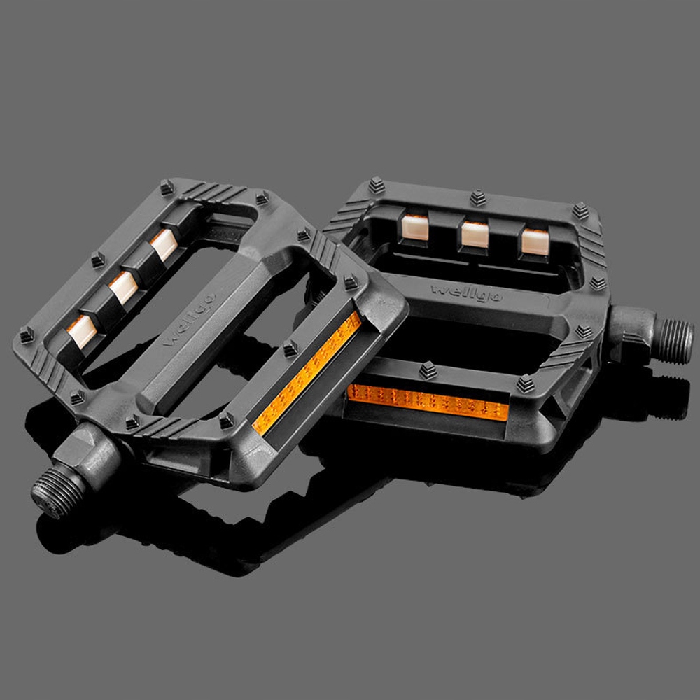 Велосипедные педали-платформы из прочного нейлона и борсодержащей стали обеспечивают надежную опору и комфорт во время езды. Боковые отражатели повышают безопасность в ночное время, а вес пары всего 278 г позволяет легко и быстро установить их.