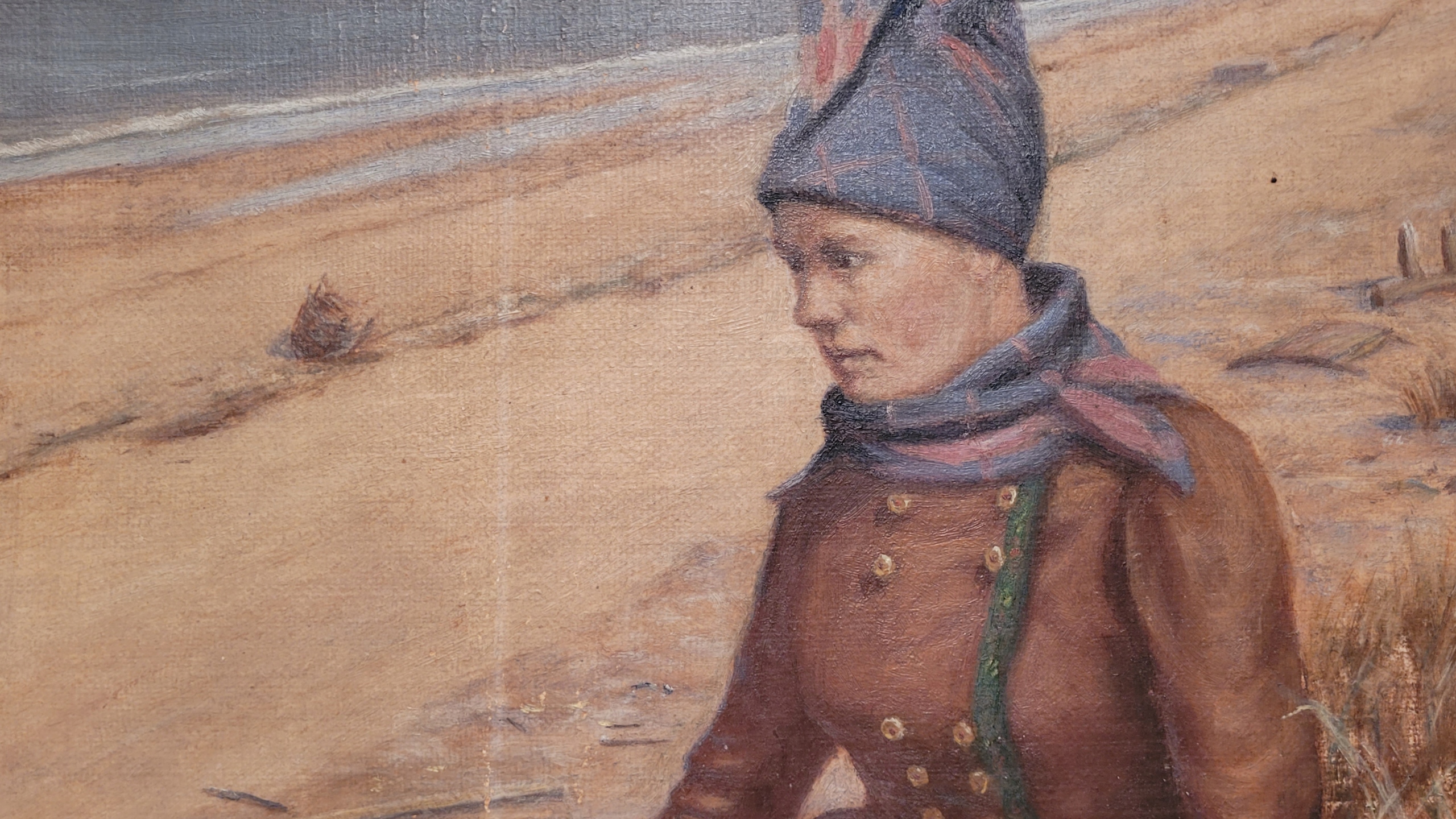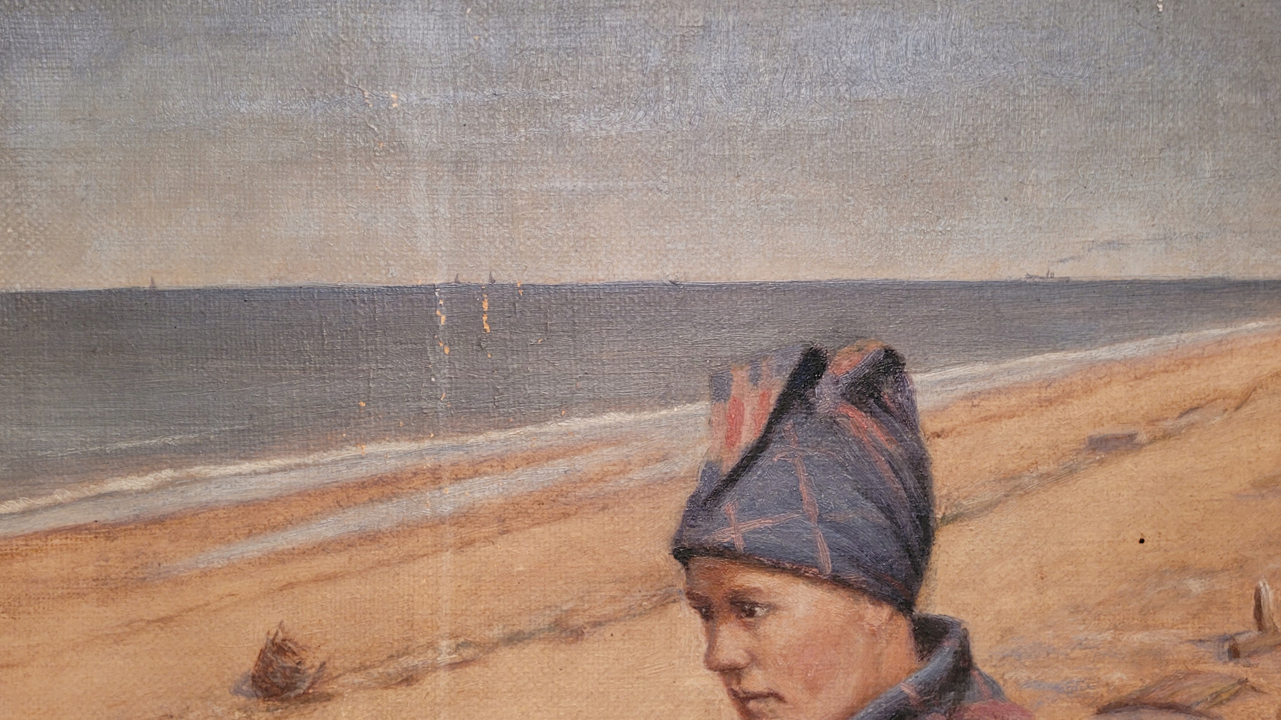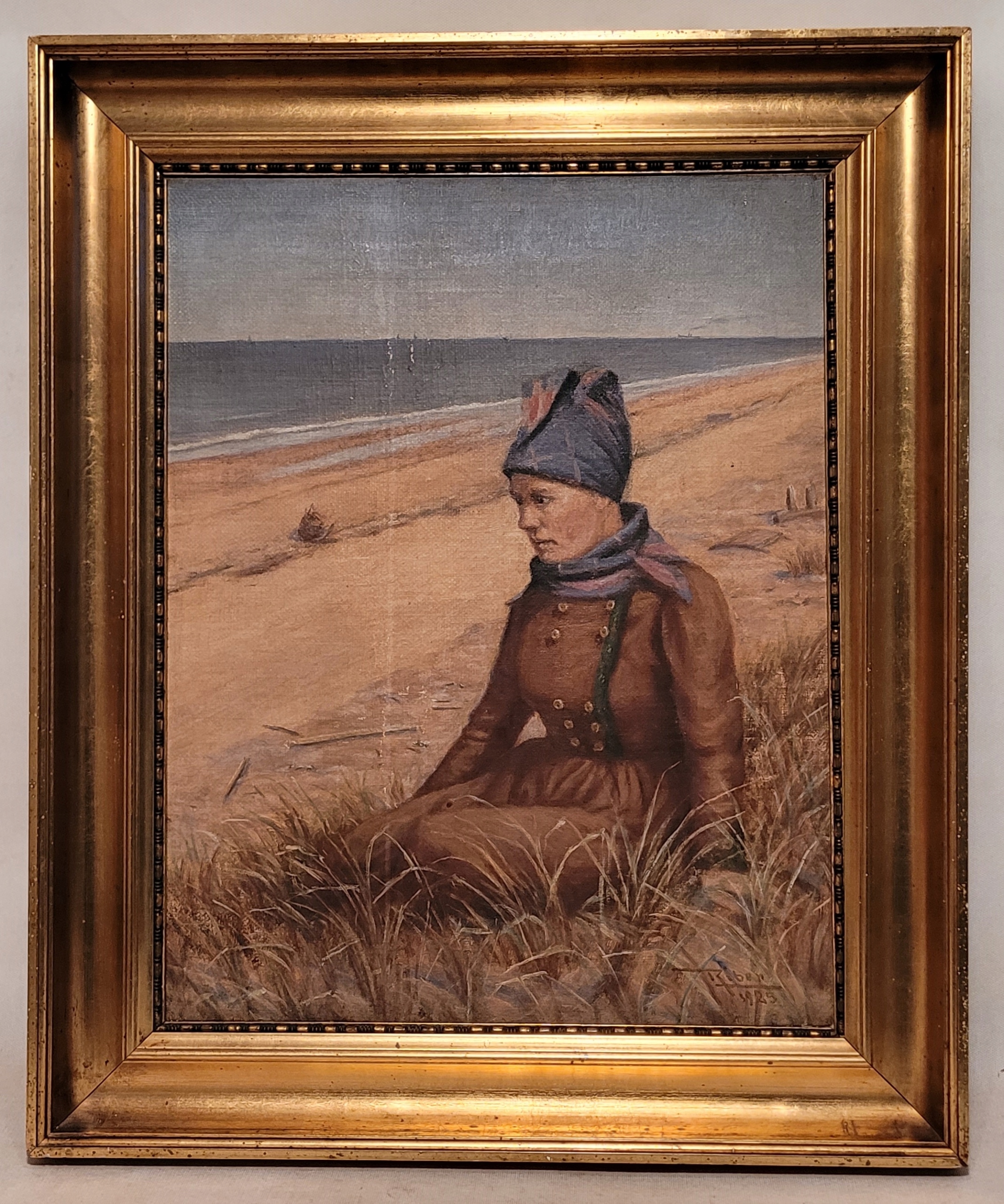 Объект продажи - красивый, старый нефтяной картину «Портрет женщины на пляже».