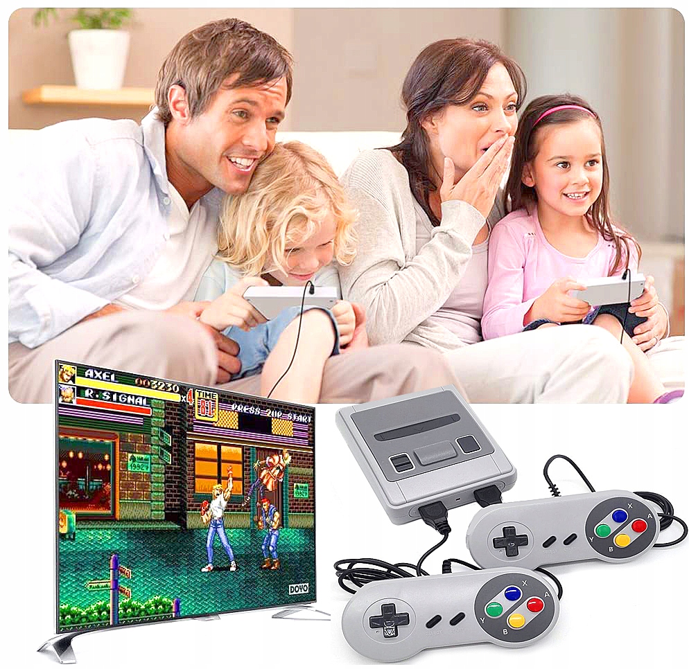 Благодаря разнообразию поддерживаемых игр консоль SFC Mini является идеальным подарком как для ребенка, так и для партнера, который помнит времена расцвета 8-битных компьютерных игр.