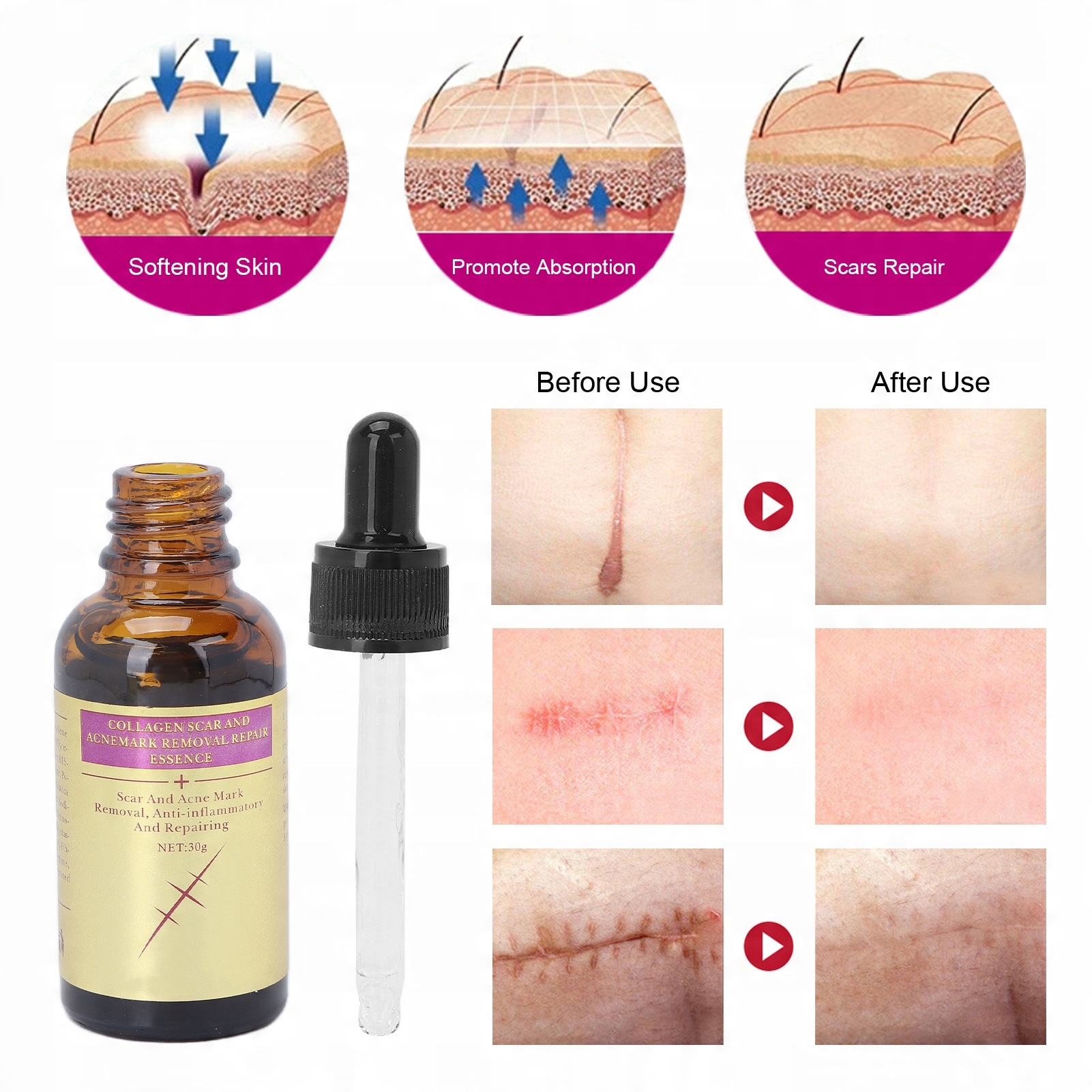 1. Удаление шрамов: значительно уменьшите появление шрамов, смягчить эпидермис, уменьшить шрамы.