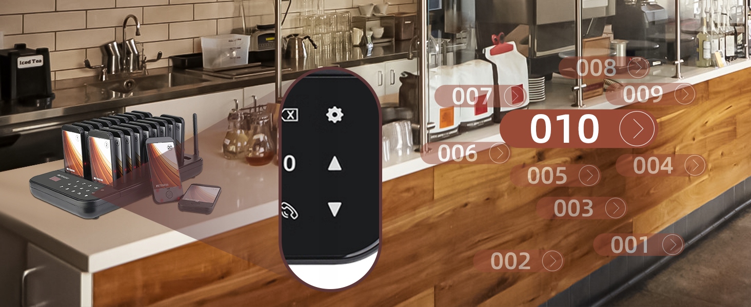 Управляйте своей очередью; Каждый ресторанный пейджер имеет встроенный аккумулятор на 200 мАч; оставить в силе на 24 часа; Индикатор зарядки всегда является источником; после полной зарядки