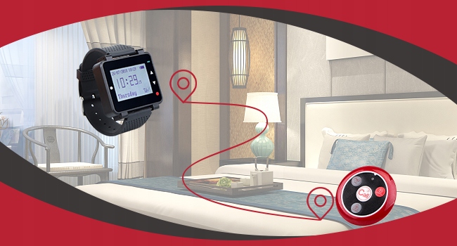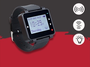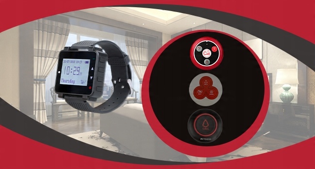 - Часы-пейджер T128 имеют три режима подсказок; Свет; Вибрация; и звук; Когда кнопка нажата; Приемник часов отобразит информацию о соединении; и будет вибрация или звон; напомнить официанту.