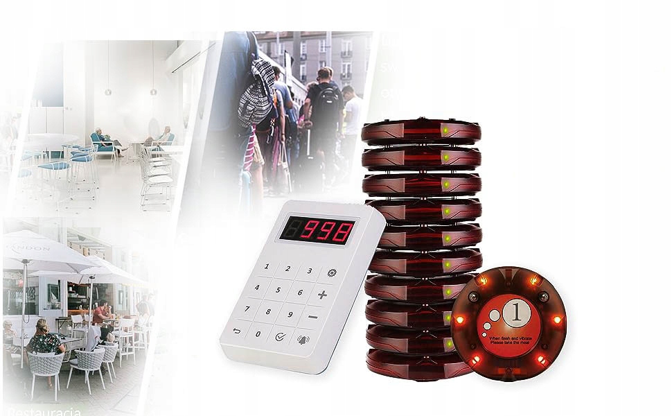 - 4 режима отображения данных на пейджерной системе; вибрация + зуммер + свет; вибрация + свет; свет гудит; множество режимов работы по выбору для разных мест; широко используется в ресторанах, больницах, средствах связи, логистике и т. д.