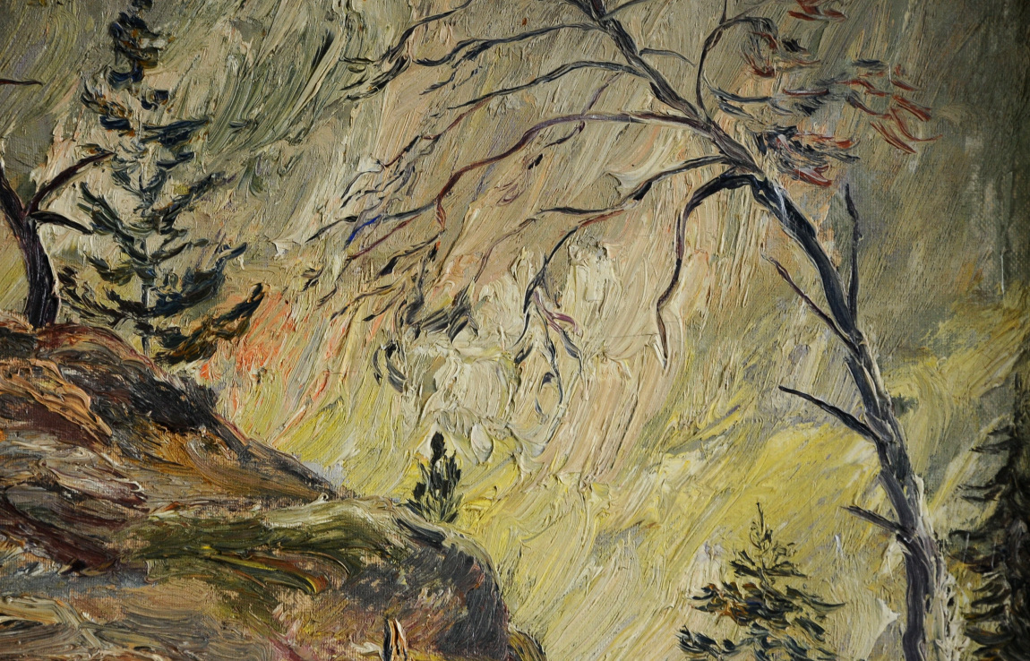 «Пейзаж с туловищем срезанного дерева» самая красивая старая нефтяная картина !!!