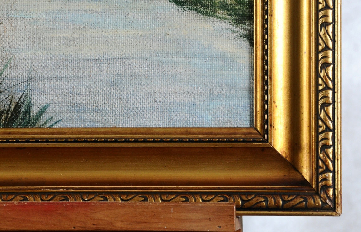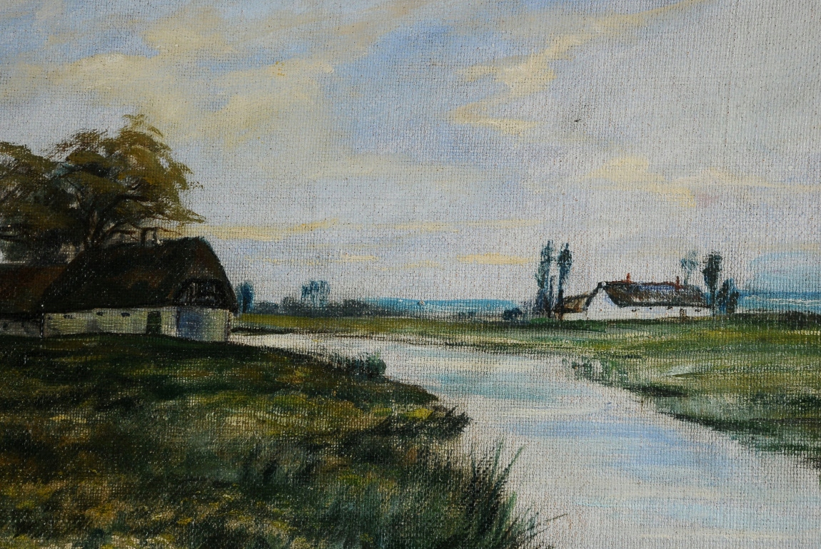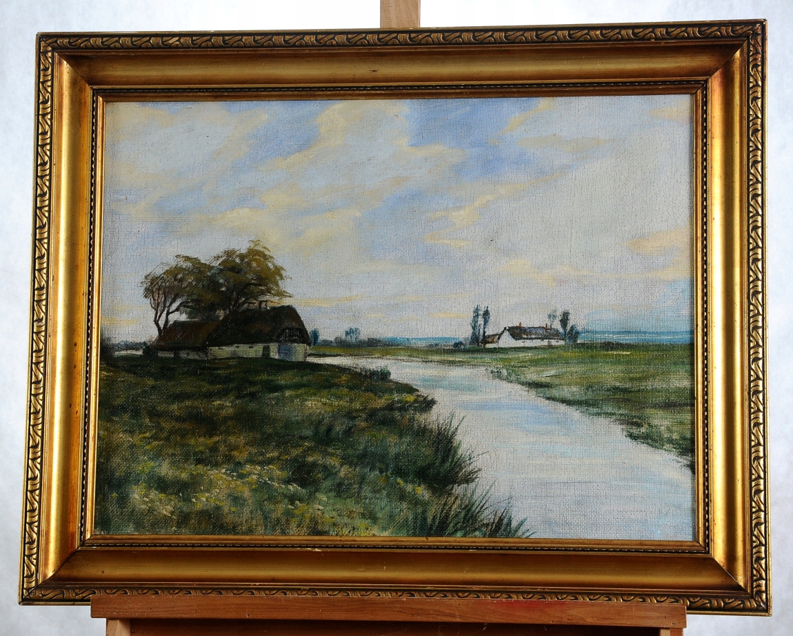 "ПЕЙЗАЖ З БУДИНОЧКОМ БІЛЯ РІЧКИ" ЧУДОВИЙ СТАРОВИЙ КАРТИНА МАСЛОМ!!!