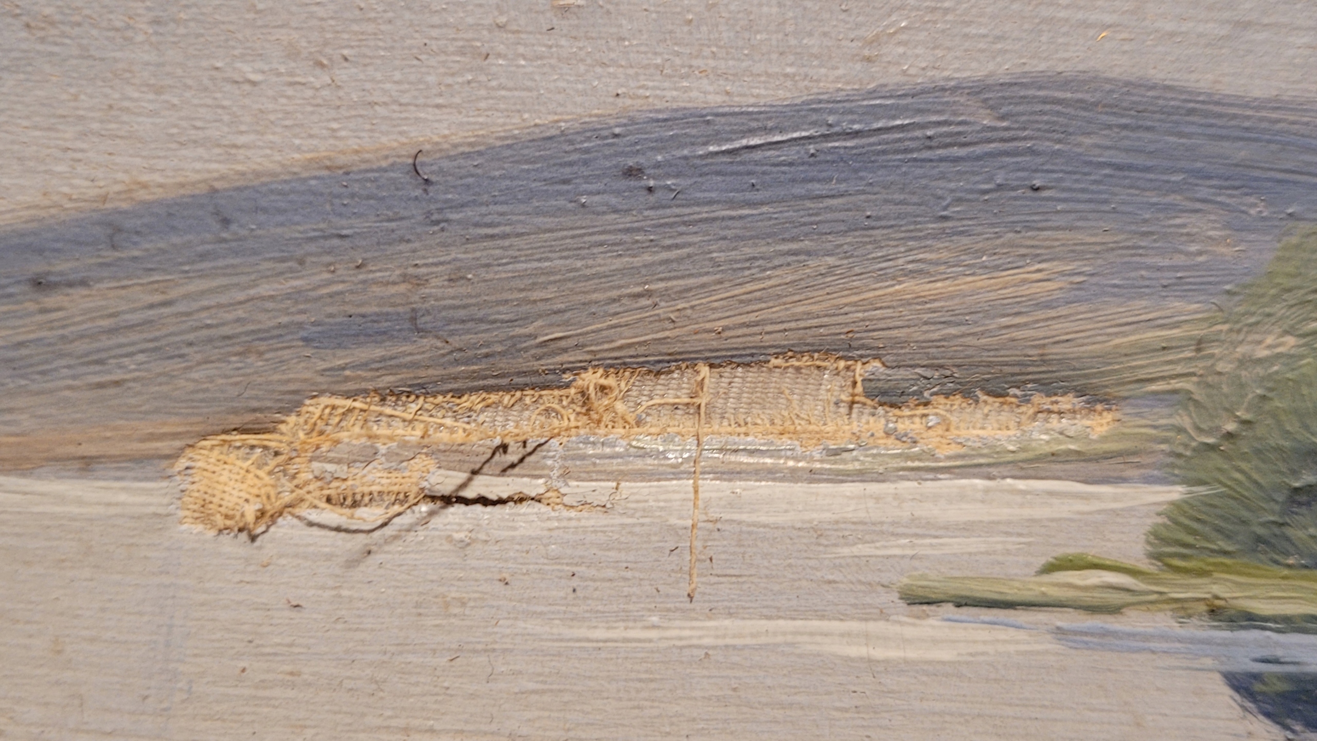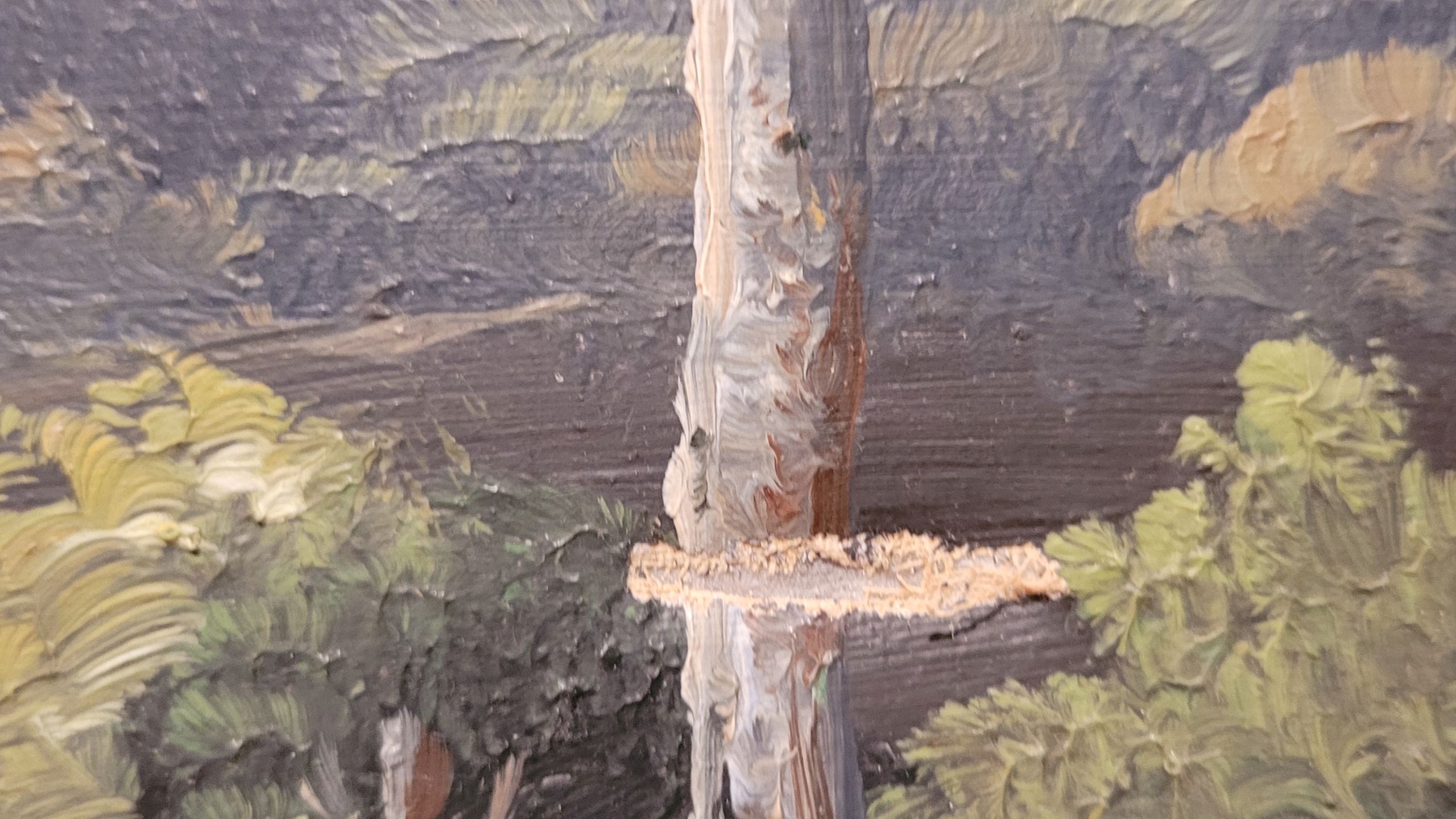 - Изображение изображения, как на прикрепленных фотографиях, не очищенных. Поврежденный холст в двух местах - 2,5 и 5 см.).