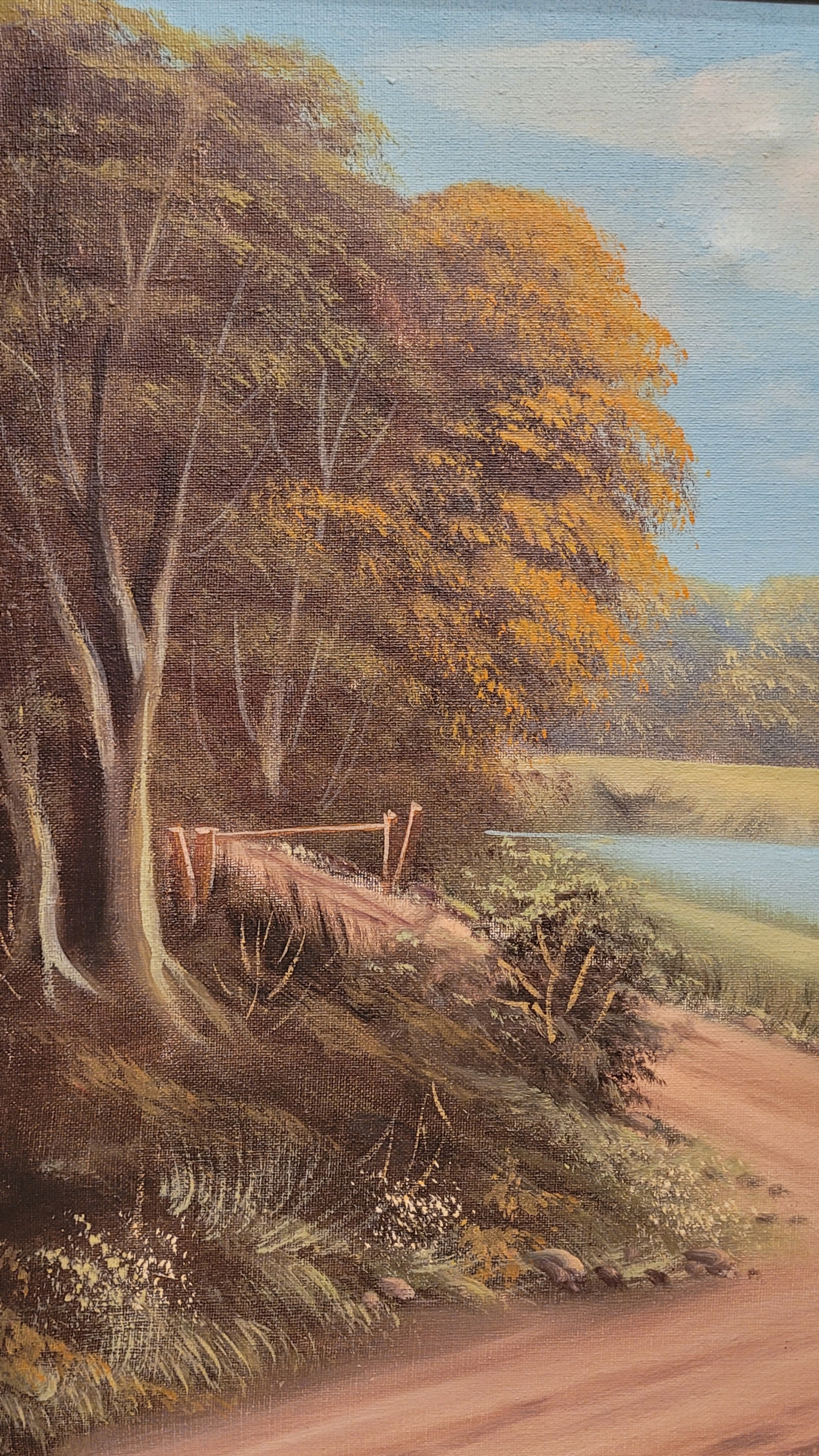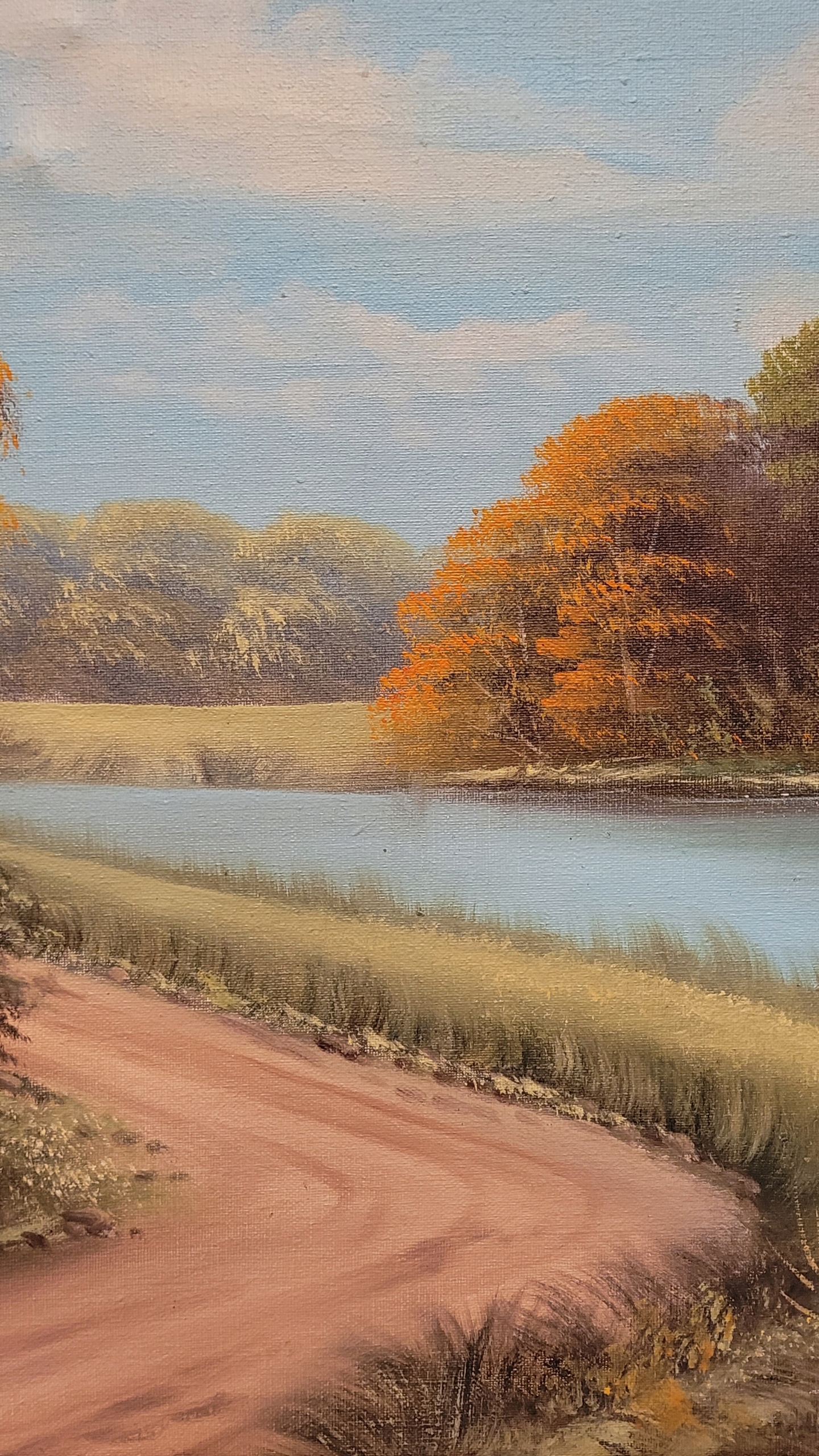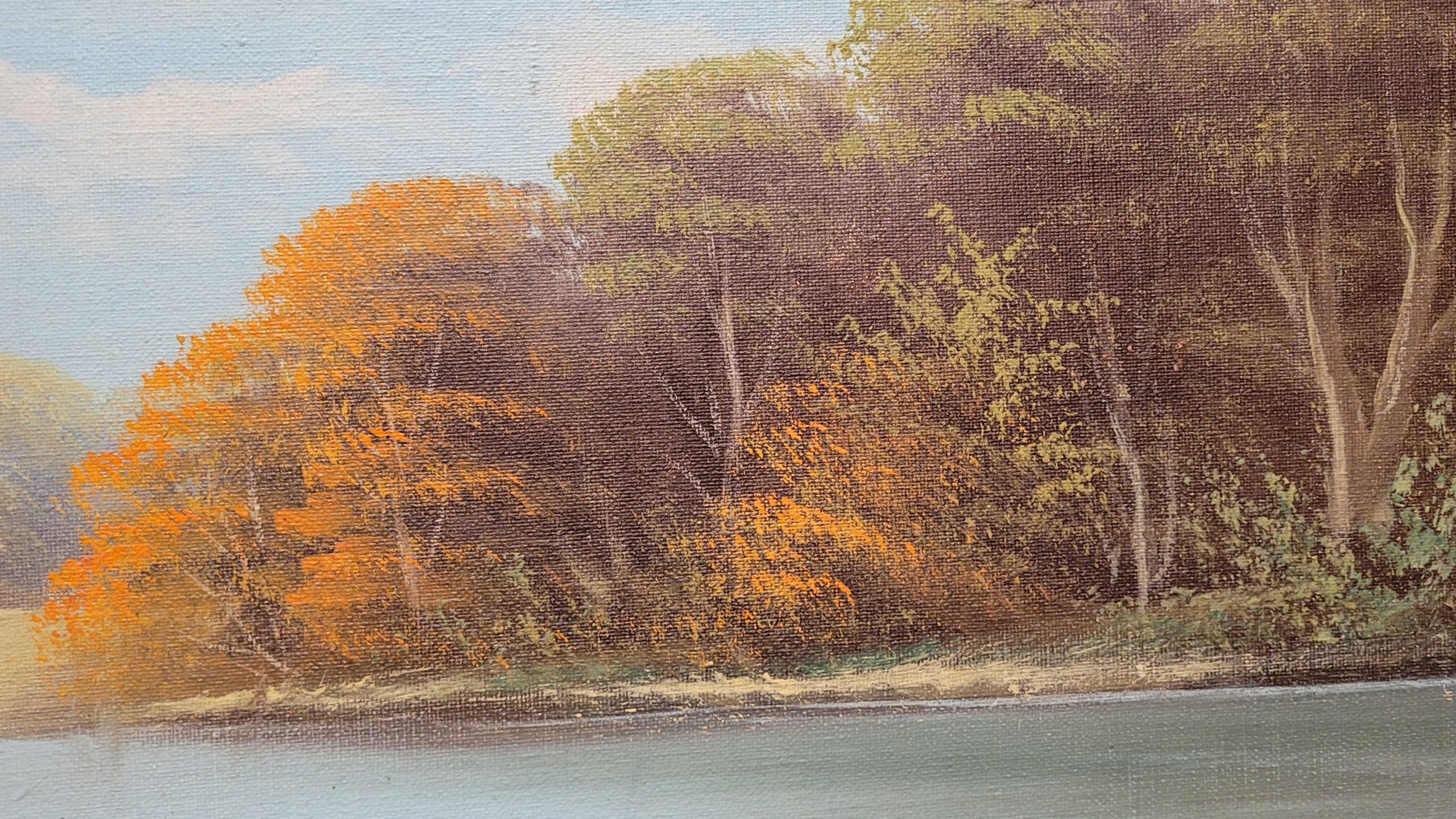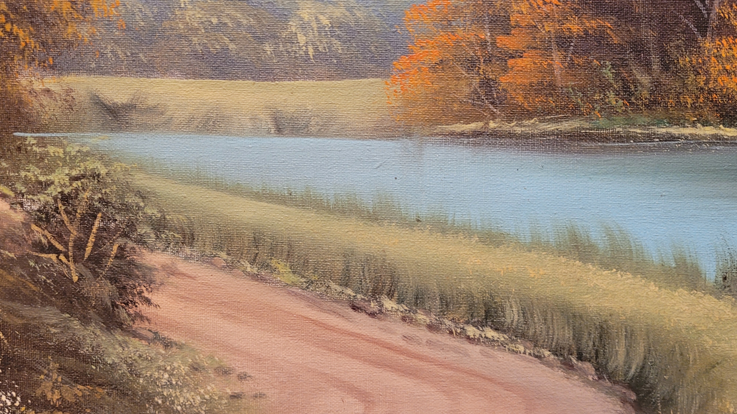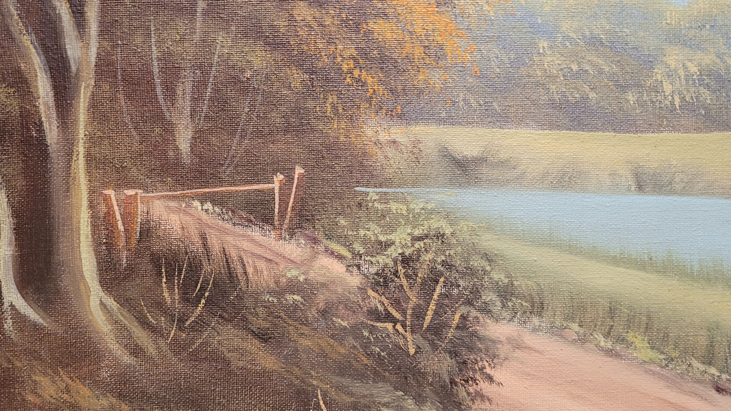 Предмет продажи - красивая старинная картина маслом «ПЕЙЗАЖ С РЕКОЙ».