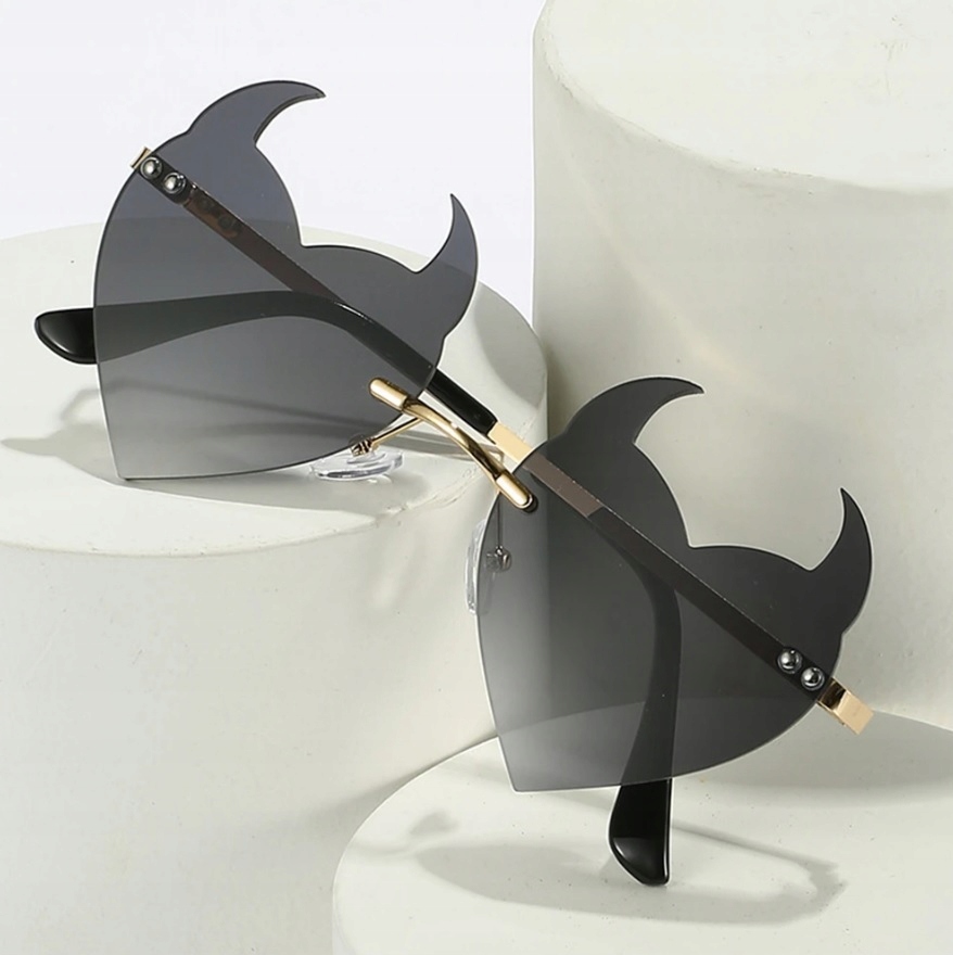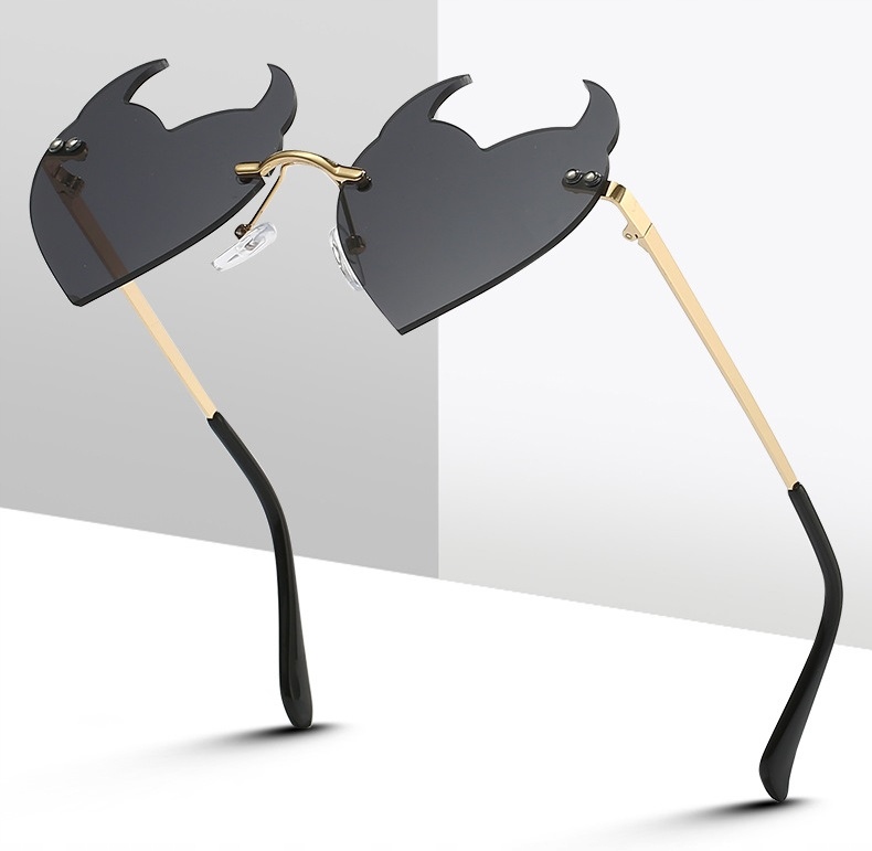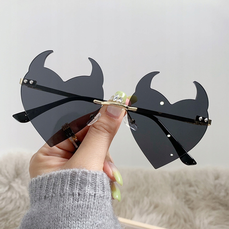 - Солнцезащитные очки,без оправы, в форме сердца с рогами дьявола,