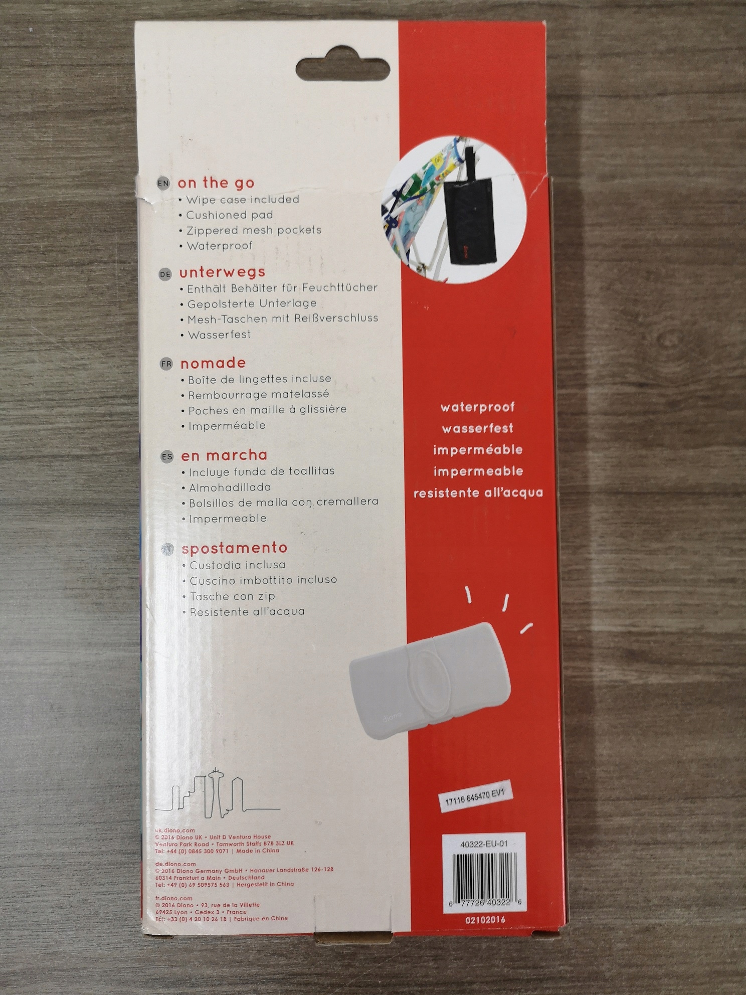 Пеленальный столик складывается и занимает мало места. Имеет сетчатые карманы на молнии и ремешок, который крепится к коляске. Благодаря водонепроницаемому покрытию защищает от грязи и легко чистится. В комплект также входит пластиковая коробочка для влажных салфеток.