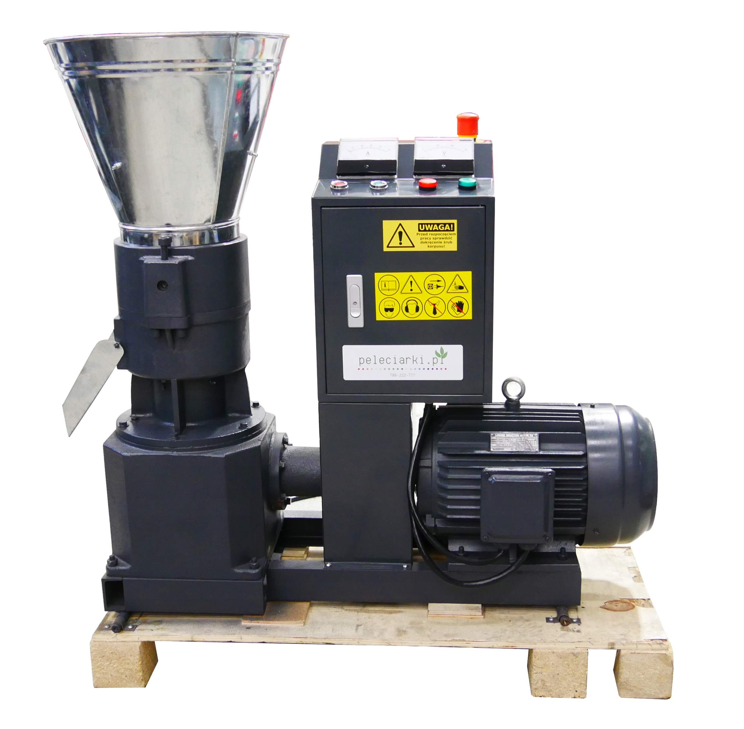 Пеллератор с двигателем мощностью 7,5 кВт позволяет использовать многие виды биомассы и производить различные виды пеллет, например