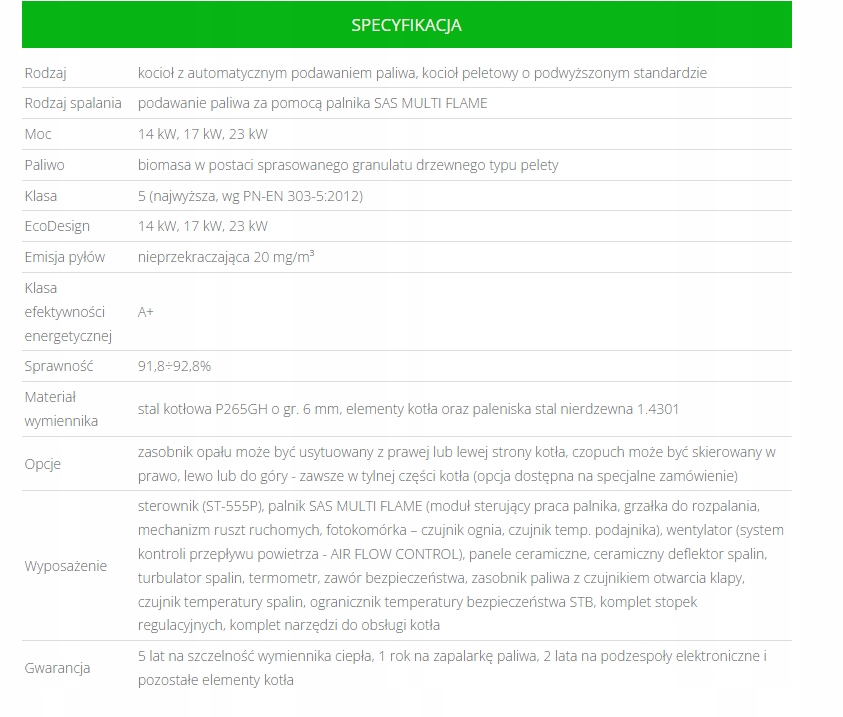 ✅класс 5 (самый высокий) согласно стандарту PN-EN 303-5:2012, сертификат EcoDesign