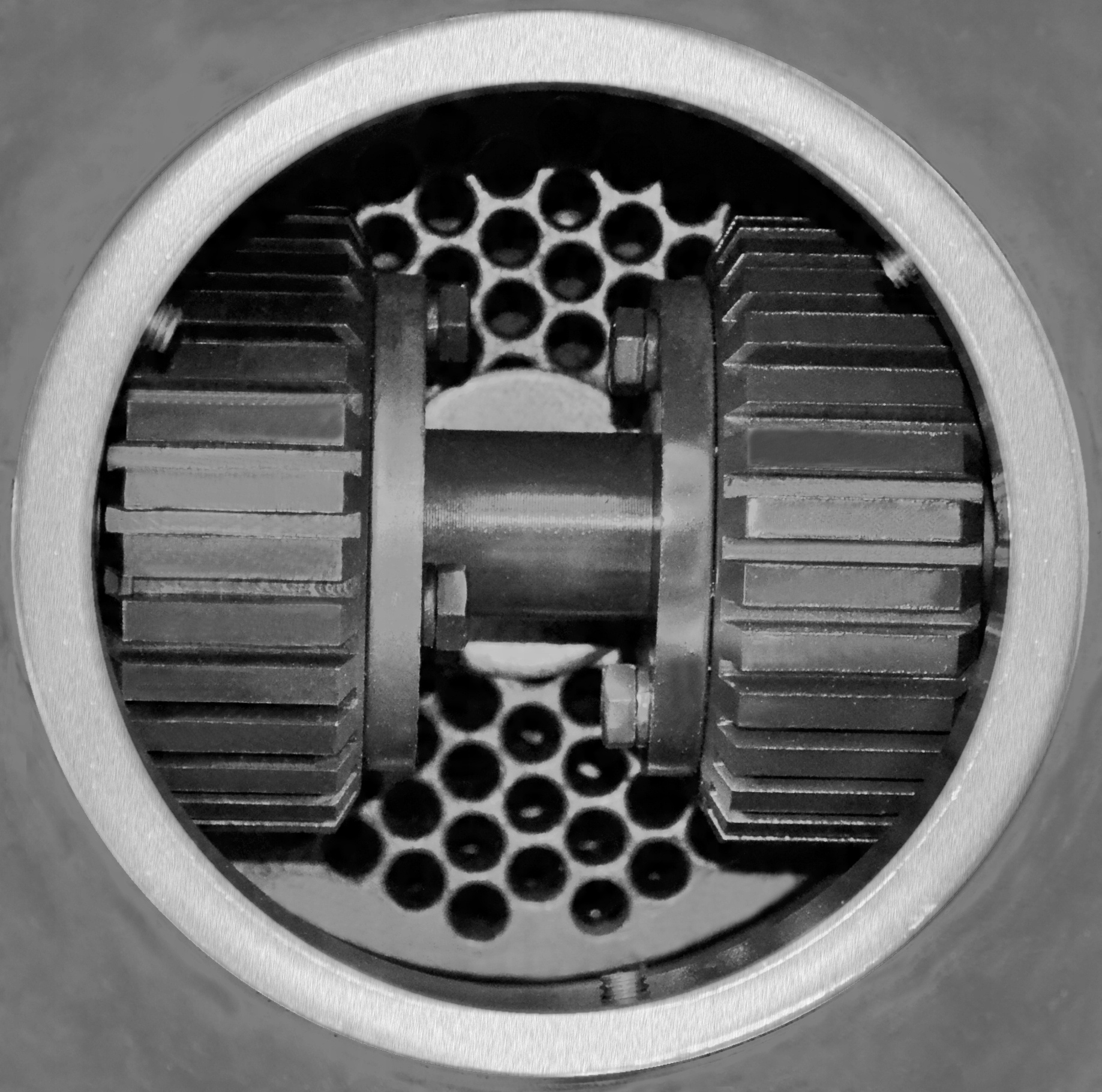 Машина оснащена сменной вращающейся матрицей диаметром 6 мм с прижимными роликами, благодаря чему мы получаем пеллеты диаметром 6 мм. Вращающиеся прижимные ролики прижимают материал и вдавливают его в матрицу.
