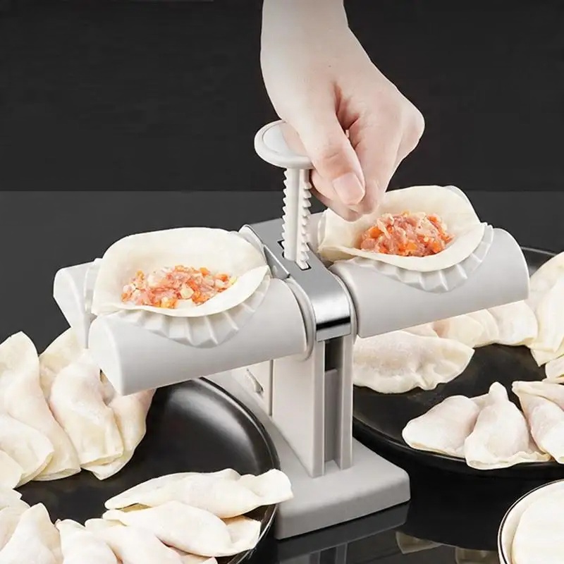 Чтобы приготовление пельменей заняло у нас не целый день, а всего десяток-другой минут (в зависимости от того, сколько пельменей мы хотим) для приготовления) предлагаем интересный кухонный гаджет - двойную машинку для приготовления пельменей..