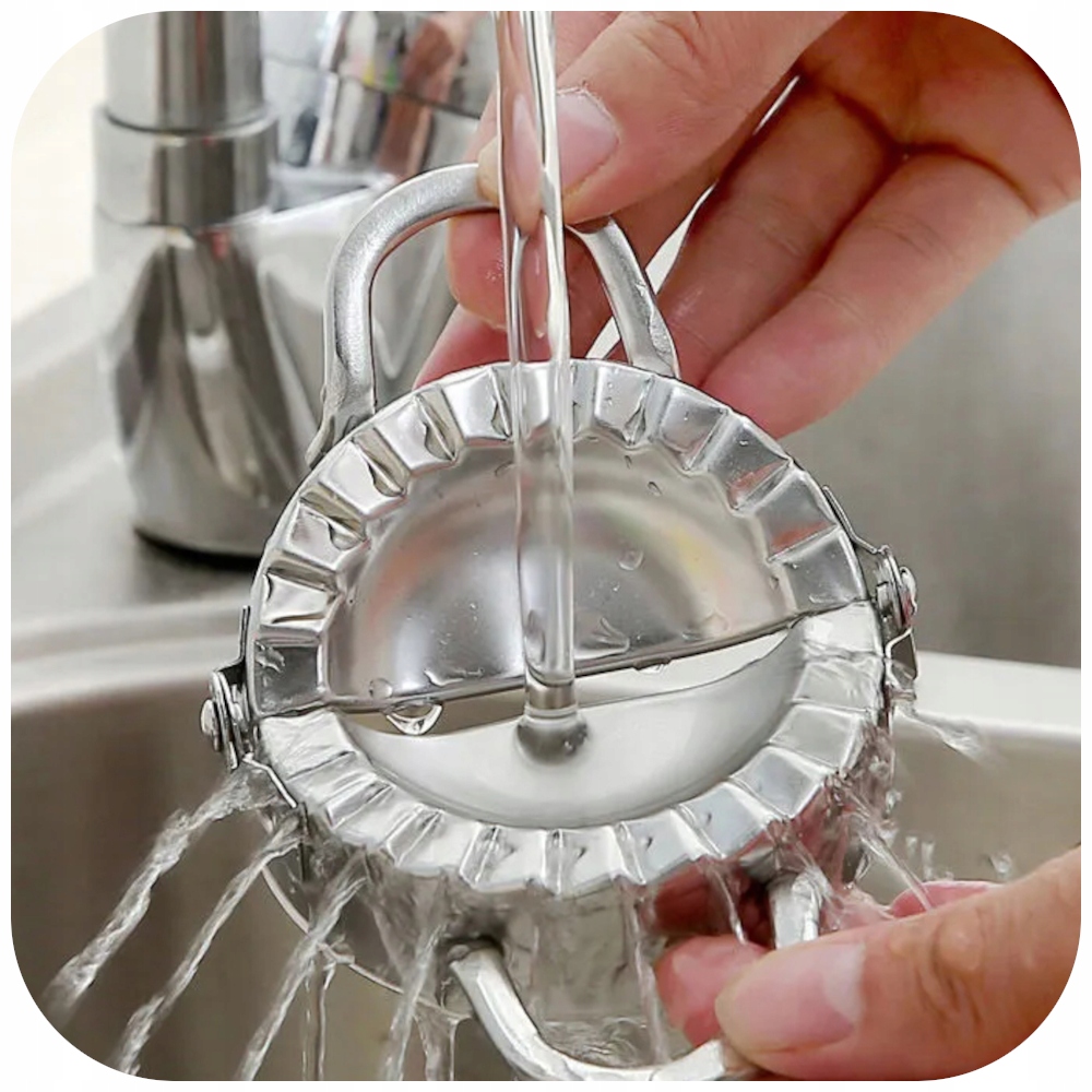 Форма изготовлена из высококачественной нержавеющей стали, безопасной при контакте с пищевыми продуктами. Он не впитывает жидкости и не вступает в реакцию с продуктом. Он также не впитывает жидкости. Он прочный ивыдержит изготовление сотен пельменей.