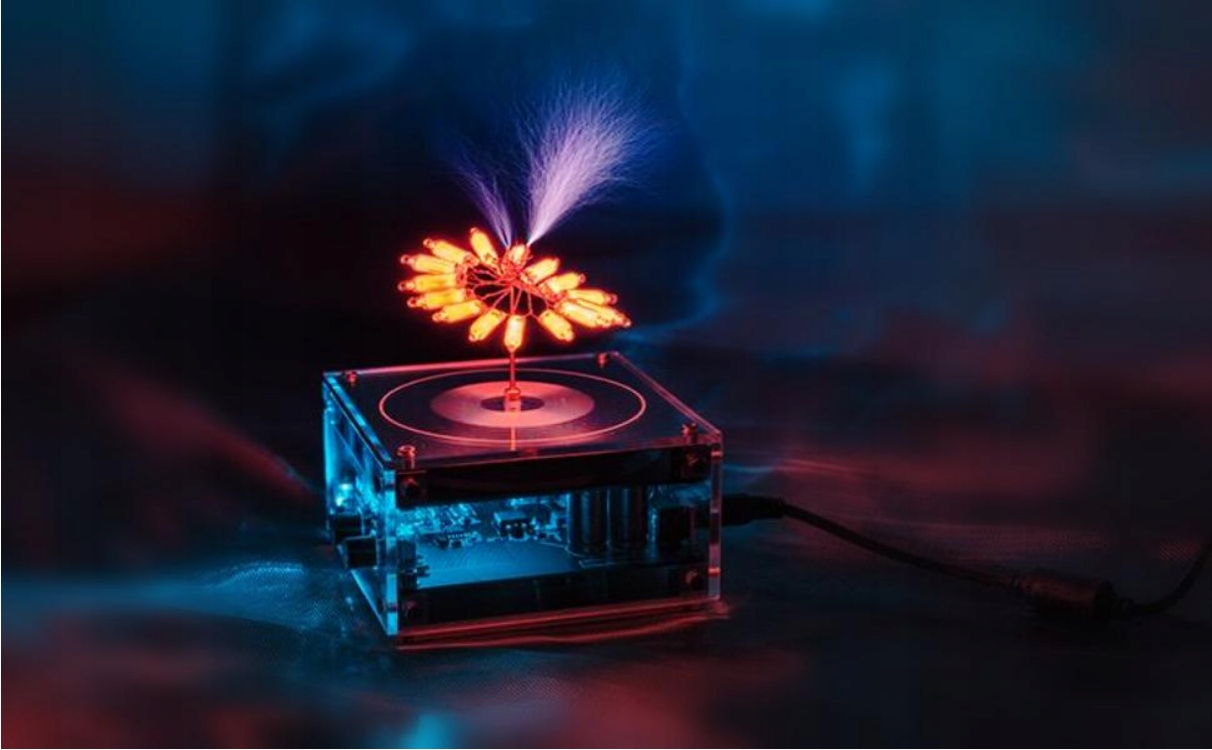 Это не обычный динамик или лампа – это сочетание миниатюрной катушки Теслы, плазменного эффекта и музыкального шоу, которое можно устроить на рабочем столе.