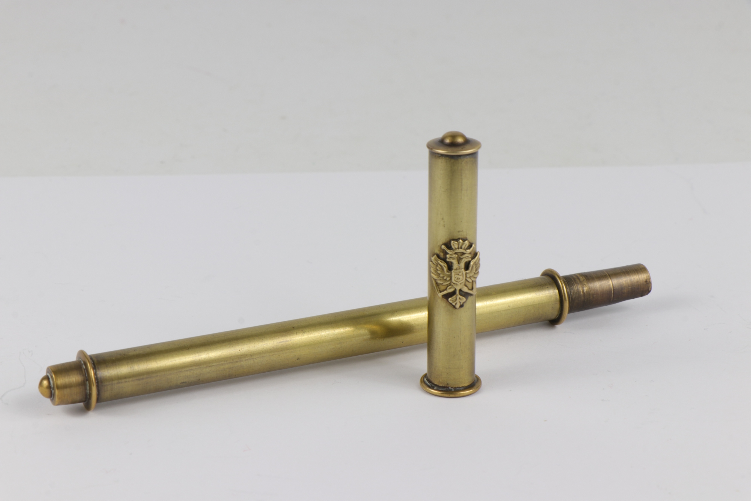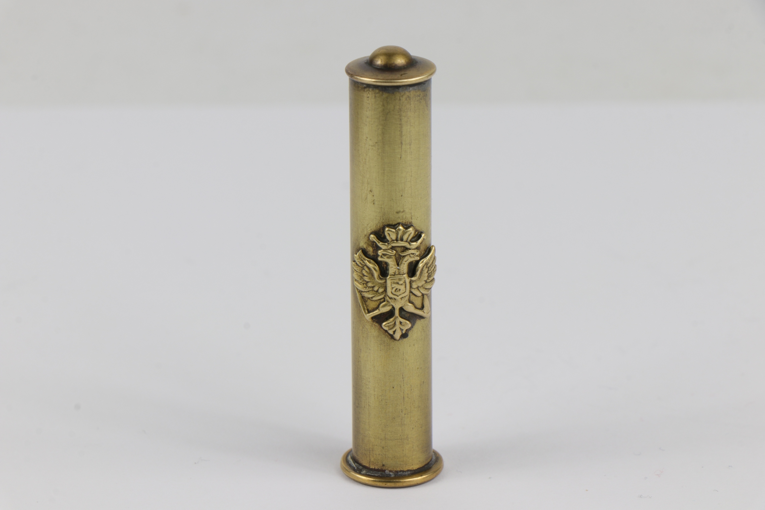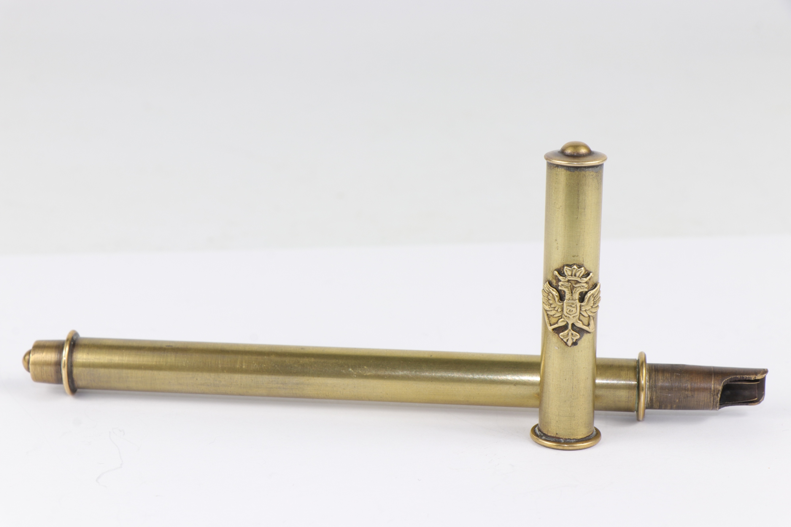 Интересное медное перьев с гербом Королевства Австрийского Габсбурга с двумя головами в короне. Очень интересный товар коллекционера. Возможно, военный сувенир? Материал : латунь