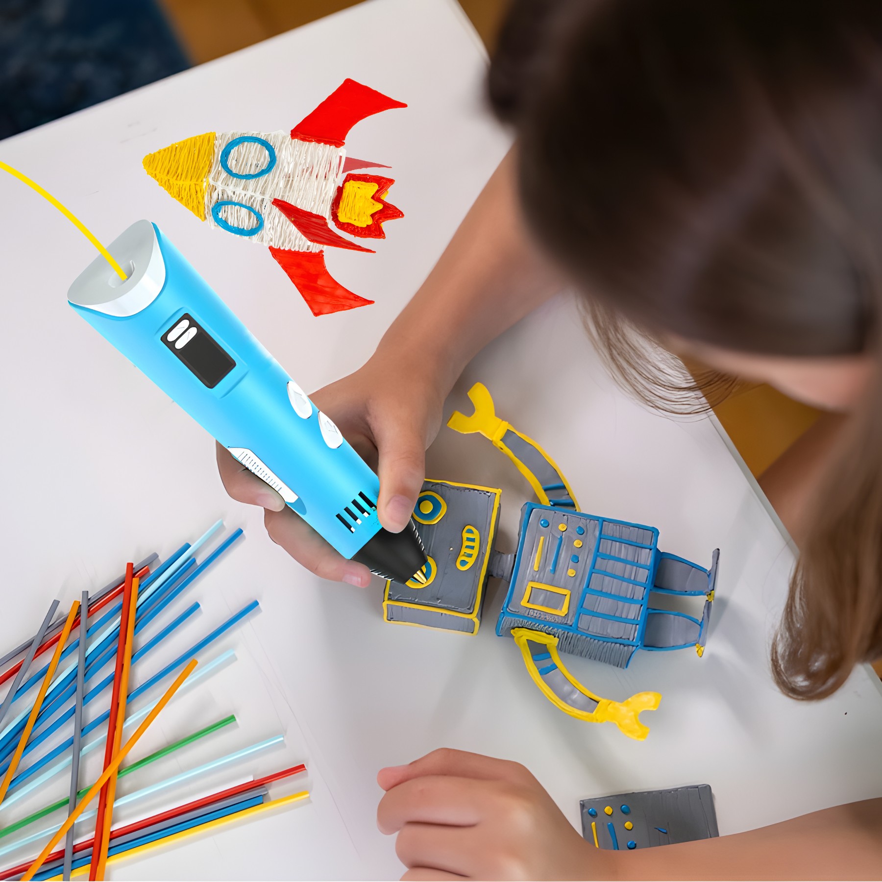 Наша 3D -ручка чрезвычайно проста в использовании, поэтому его могут использовать новичками , которые никогда не сталкивались с 3D -печати, включая детей