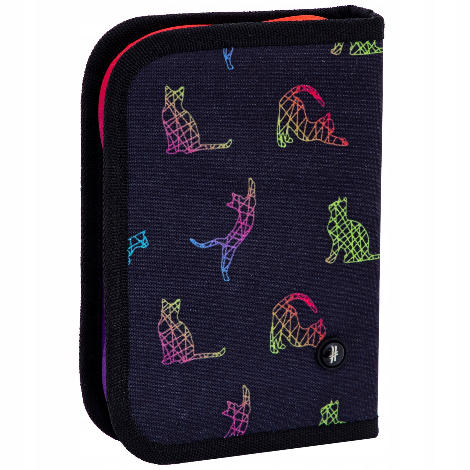 Пенал Hash Kitty Smile с одним отделением — абсолютный must-have в этом сезоне. Элегантный черный цвет с узором в виде геометрических кошек и яркой молнией покорит сердце каждого любителя кошек. Пенал не имеет аксессуаров. Однако благодаря просторному и складному салону в нем можно разместить необходимые аксессуары, в том числе мелки, маркеры, карандаши, ручки и линейки. Пенал идеально подходит для I-I классов.