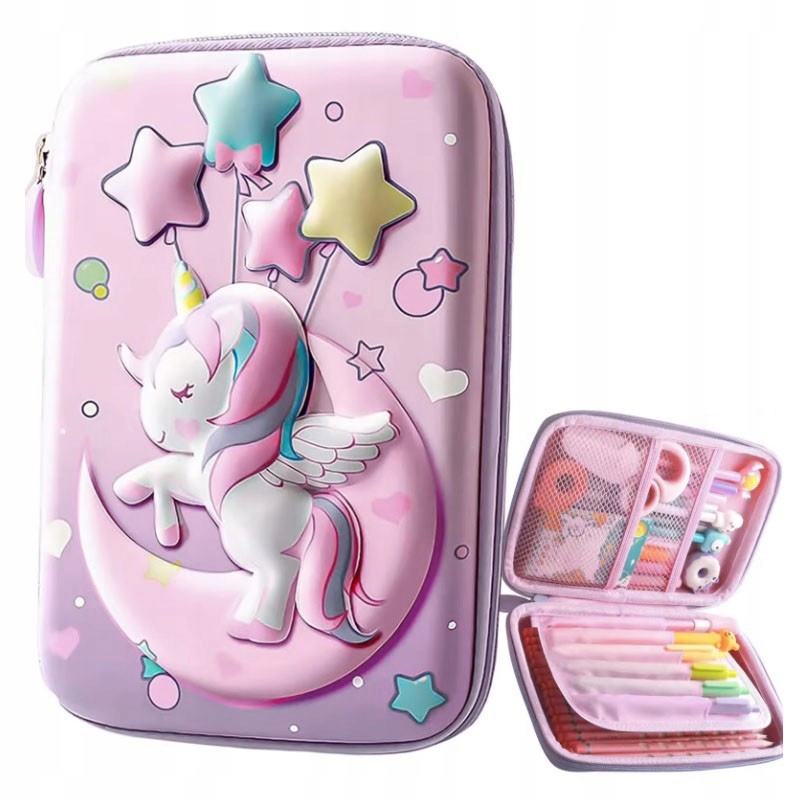PIÓRNIK SZKOLNY USZTYWNIANY ROZKŁADANY 3W1 JEDNOROŻEC 3D DLA DZIEWCZYNKI