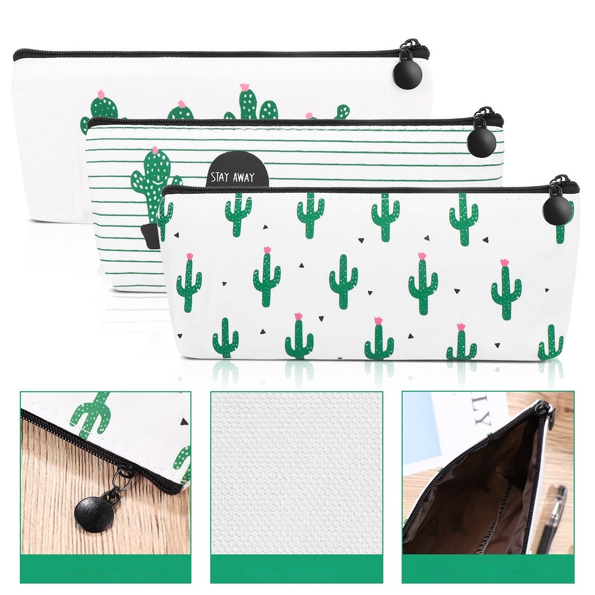 ✅Этот предмет представляет собой набор из 3 сумок для ручек для хранения большого количества расходных материалов. С милым украшением кактусов они выглядят очень мило и привлекательно. Это поможет вам держать разбросанные канцелярские принадлежности в порядке, чтобы их было легко поймать. Если вы будете носить его с собой каждый день, он подарит вам хорошее и свежее ощущение.