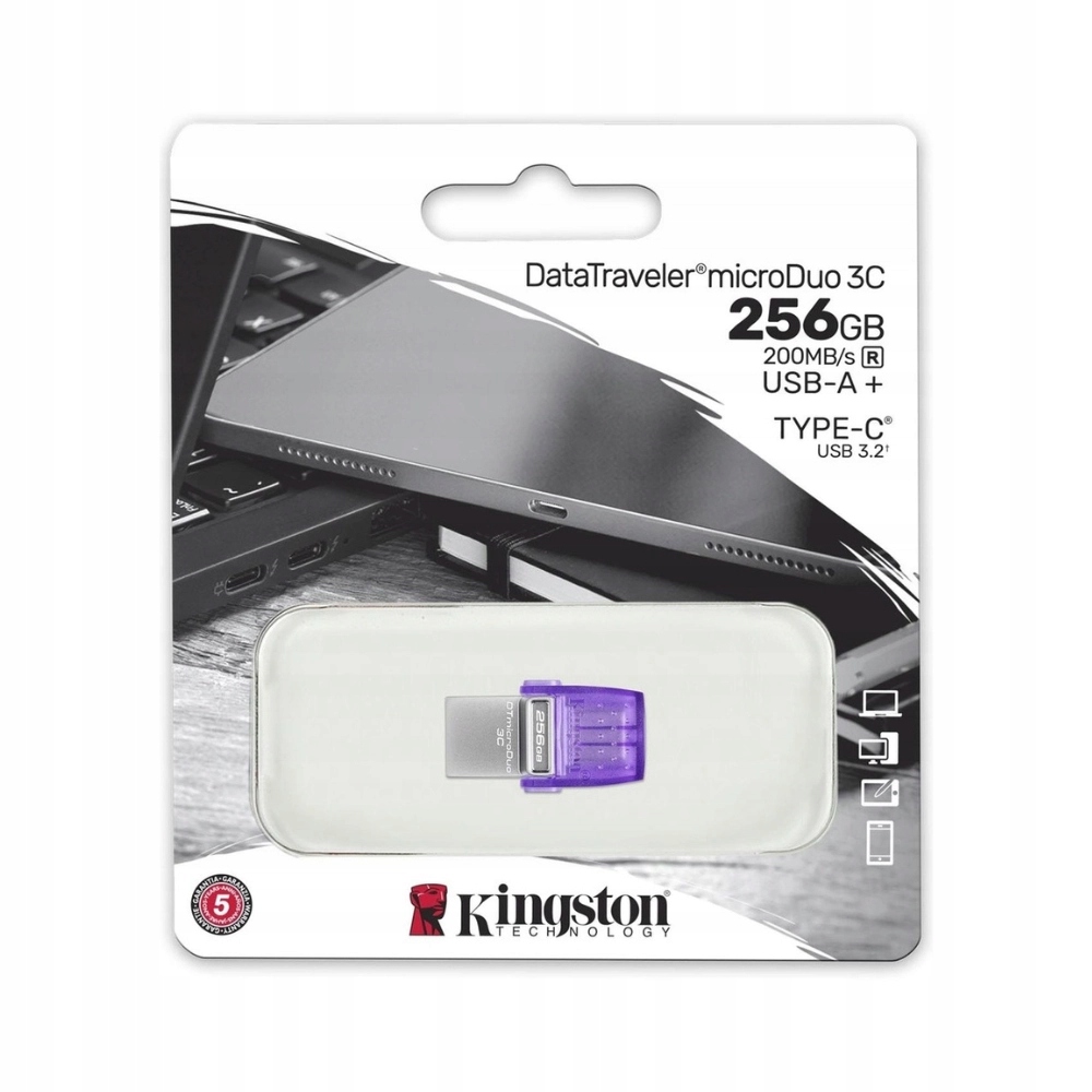 Pendrive Kingston Microduo 3C 256 ГБ 200 МБ/с USB A и C USB 3.2