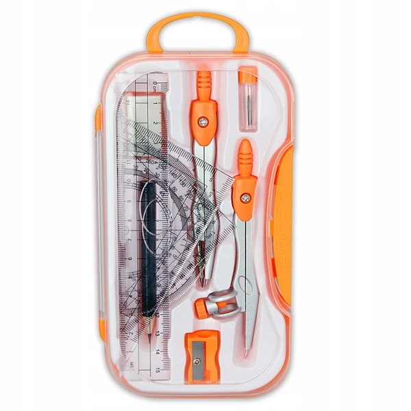 PENMATE НАБІР ГЕОМЕТРИЧНИЙ ЦИРКЕЛЬ З КРЕСЛЯРСЬКИМ НАЧИННЯМ ПОМАРАНЧЕВОГО КОЛЬОРУ