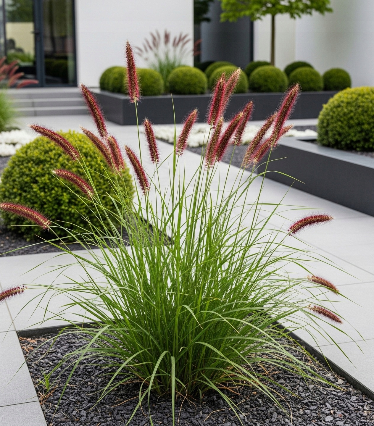 Красная голова японская (Pennisetum alopecuroides 'Red Head') — впечатляющая многолетняя декоративная трава, ценимая за декоративную форму, пышное цветение и цветовую гамму. Во время цветения вырастает до высоты около 120-150 см, образуя плотные полусферические комки узких, дугообразных листьев.