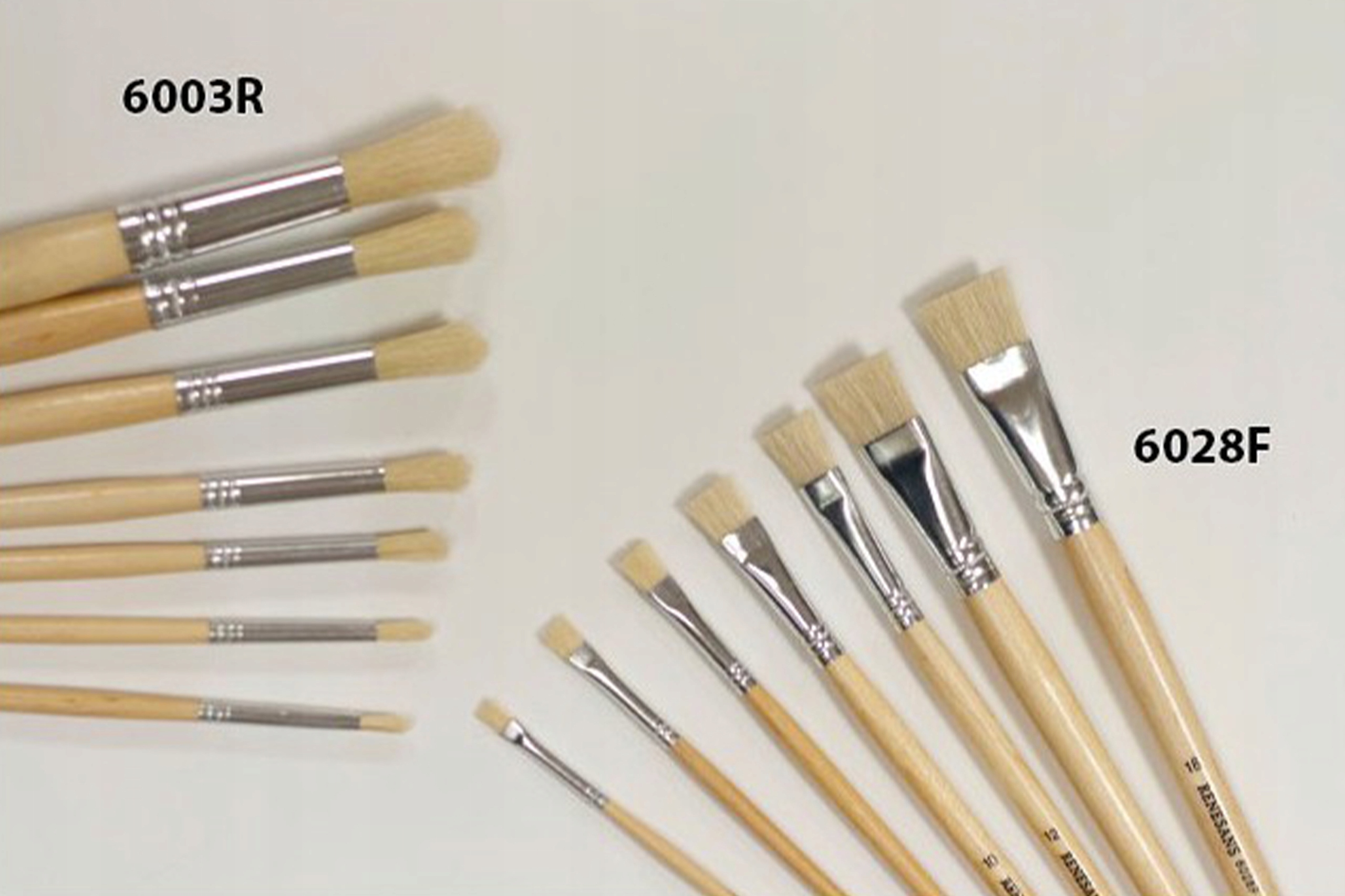 - Жесткая щетина устойчива к растворителям,оставляет четкие следы от кисти. мазки