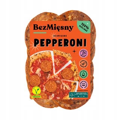 Растительная альтернатива пепперони в ломтиках на основе пшеничного белка.