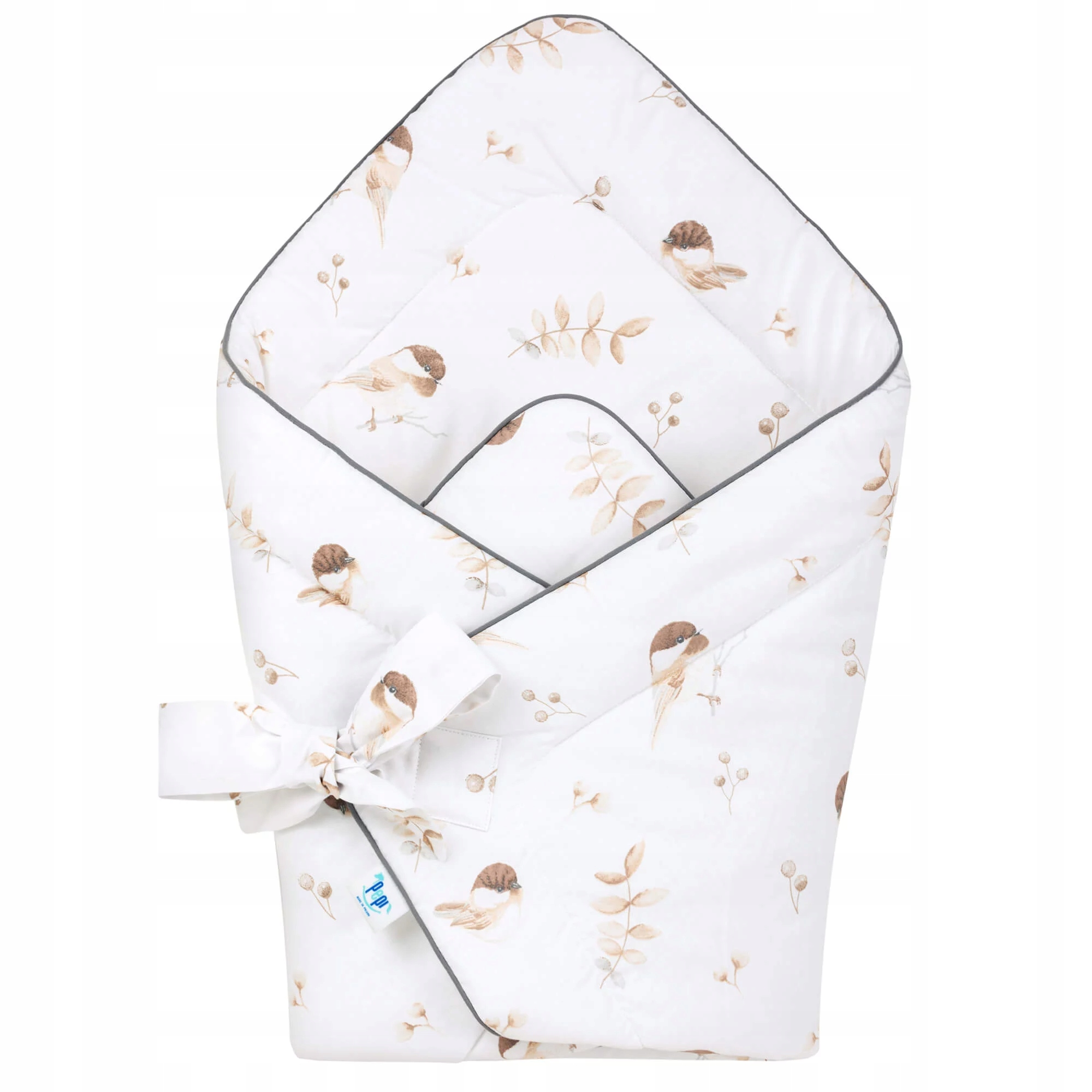 <р> материал: 100 % хлопок <р> наполнитель: противоаллергический силиконовый флизелинПеленка из хлопка из коллекции LOVELY BIRD завязывается кушаком, что позволяет подогнать ее под размер ребенка и регулировать степень укутывания. Это безопасная и удобная форма крепления, исключающая использование в нашем изделии жестких элементов, таких как липучки, которые могут вызвать раздражение нежной кожи ребенка.