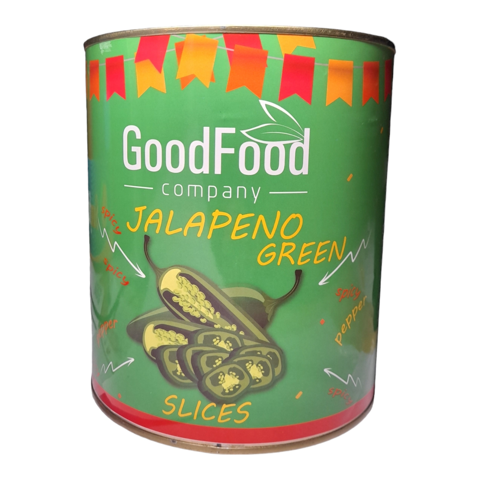 ЗЕЛЕНЫЙ НАРУБЕННЫЙ ПЕРЕЦ ХАЛАПЕНО GOODFOOD 3000Г/1560Г