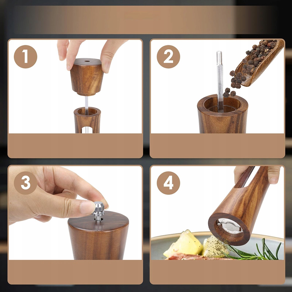 【Высококачественное ручное набор соли и перца. Благодаря высококачественному изготовлению, этот набор будет послужить вам надежно в течение многих лет! Уникальное зерно из дерева делает каждую перцовую шлифовальную машину уникальной! Поскольку дерево водонепроницаемое, просто протрите ее влажной тканью.