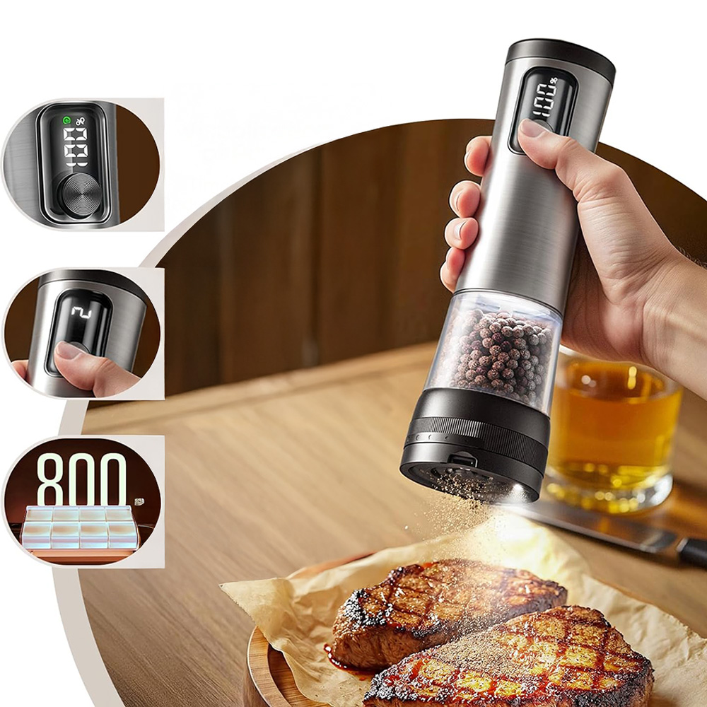 Благодаря серому корпусу из нержавеющей стали и прозрачной конструкции силоса, конструкция шлифовальной шлифовании прощается с эрой ручного шлифования. Благодаря этому каждая приправа станет удовольствием. (Без перца и соли)