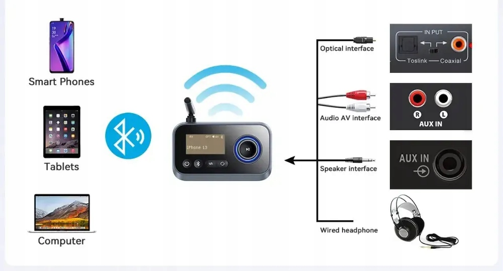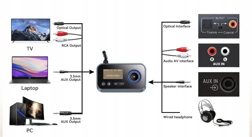 ПЕРЕДАЧА АУДИОСИГНАЛА ЧЕРЕЗ AUX/OPT АДАПТЕР BLUETOOTH ПЕРЕДАТЧИК ПРИЕМНИК