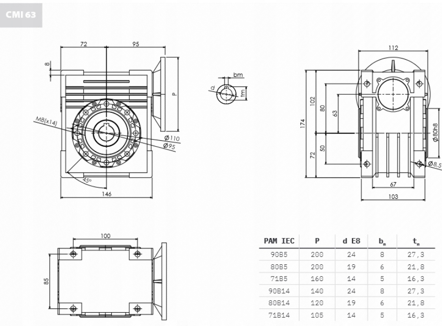 Передача CMI63 1/100 14 об/мин 71B5