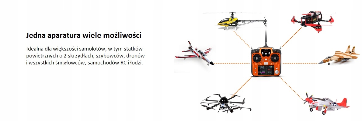 Последняя версия устройства AT10II — идеальная радиостанция для начинающих и опытных моделистов. Идеально подходит для управления дистанционно управляемыми моделями планеров, дронов, вертолетов, лодок и самолетов с ДВС и электроприводами. AT10II имеет 16 каналов со скачкообразной перестройкой частоты. QPSK прекрасно обеспечивает защиту от помех. Отлично подходит для контроля устойчивости в городских условиях. Оборудование легко программируется, интуитивно понятно в использовании и богато оснащено. Большой цветной ЖК-дисплей позволит легко и быстро настроить все необходимые параметры для данной модели.