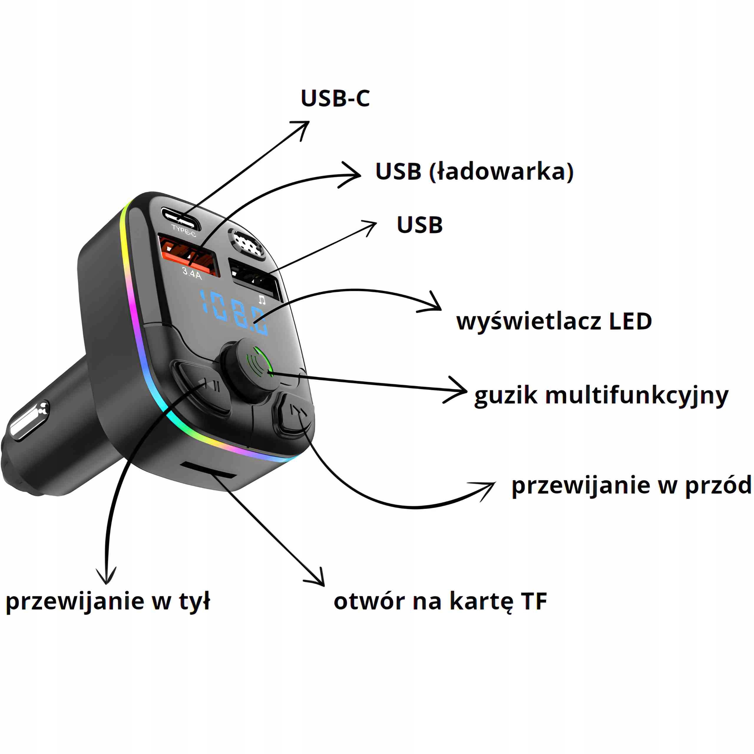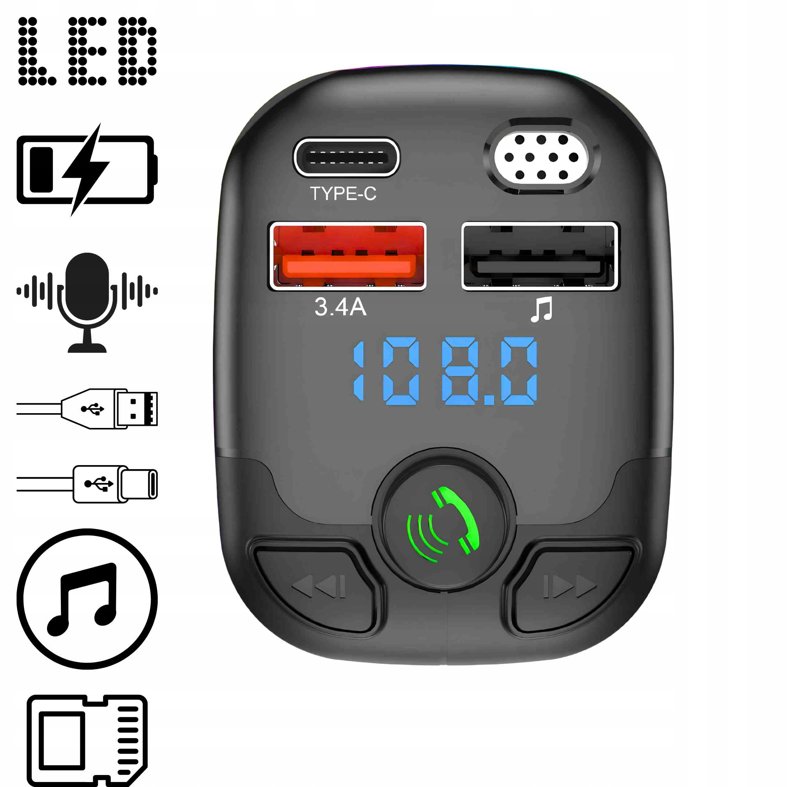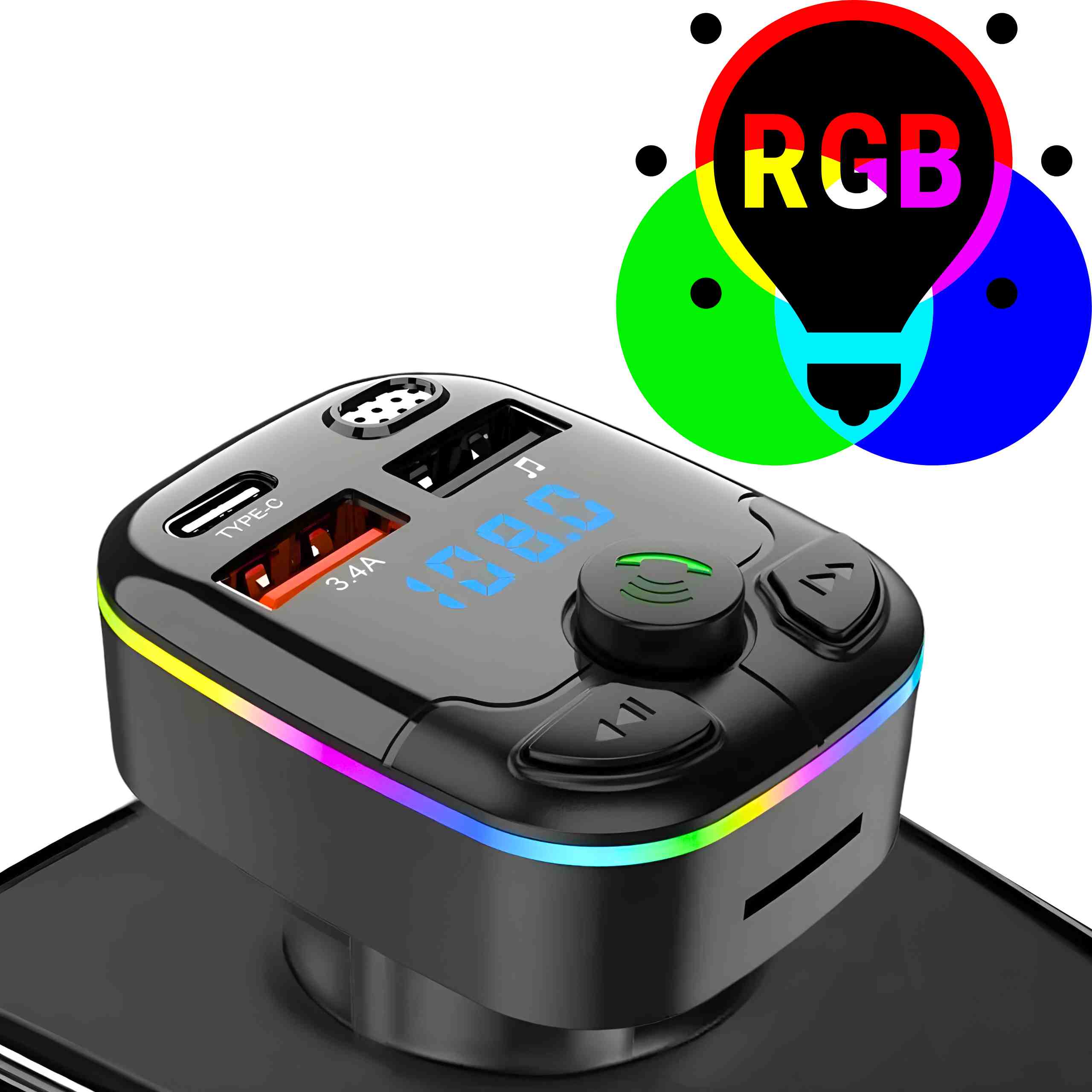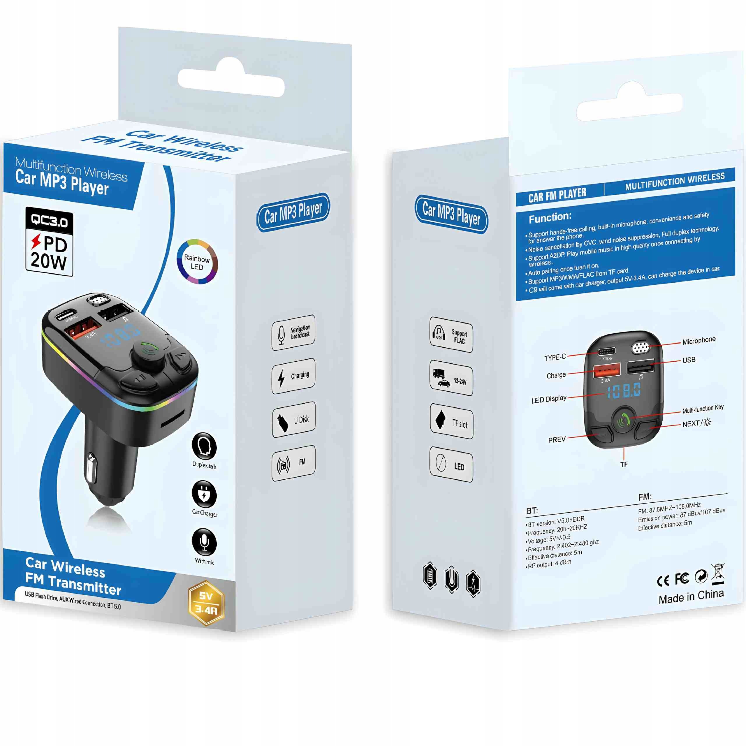 Bluetooth FM Mp3 Bluetooth-передатчик с зарядным устройством и аудиоплером: RGB LED USB-C