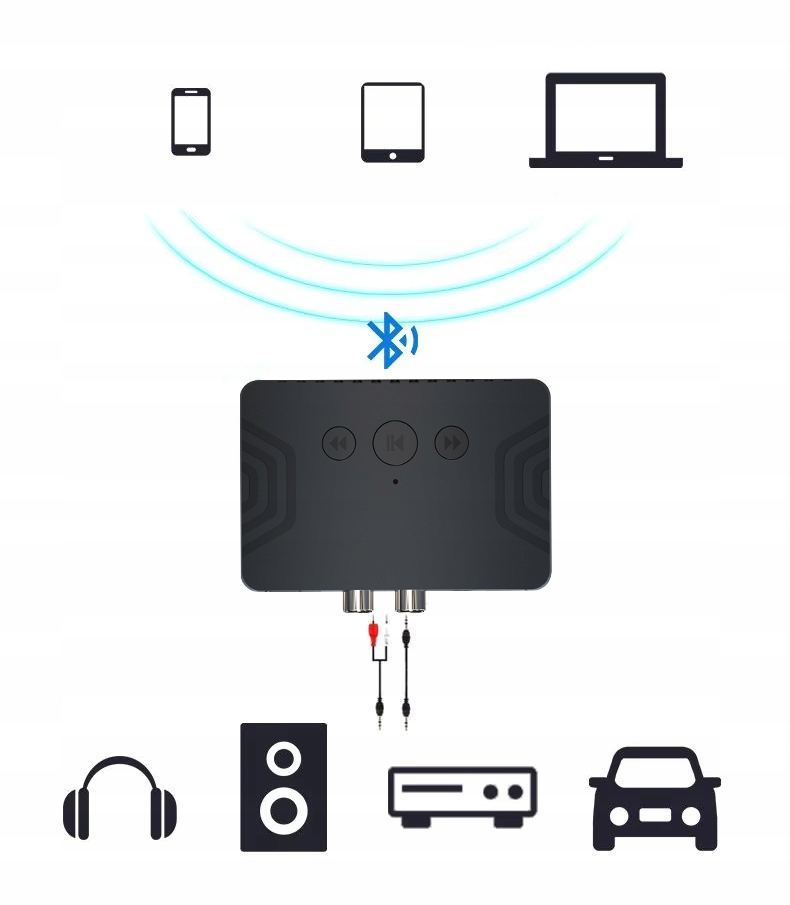 Универсальный и современный передатчик Bluetooth 5.3, Устройство имеет приемник передатчика и bluetooth, USB-вход, вход USB-C, AUX и 2 порта RCA. Идеально подходит для домашнего кино, автомобиля или стерео. Высоко -качественное соединение by Bluetooth не портит качество звука, музыка отправляется без промедления и потери качества. Устройство имеет построенную антенну, которая без каких -либо препятствий позволяет сохранить стабильность соединения до 10 метров.
