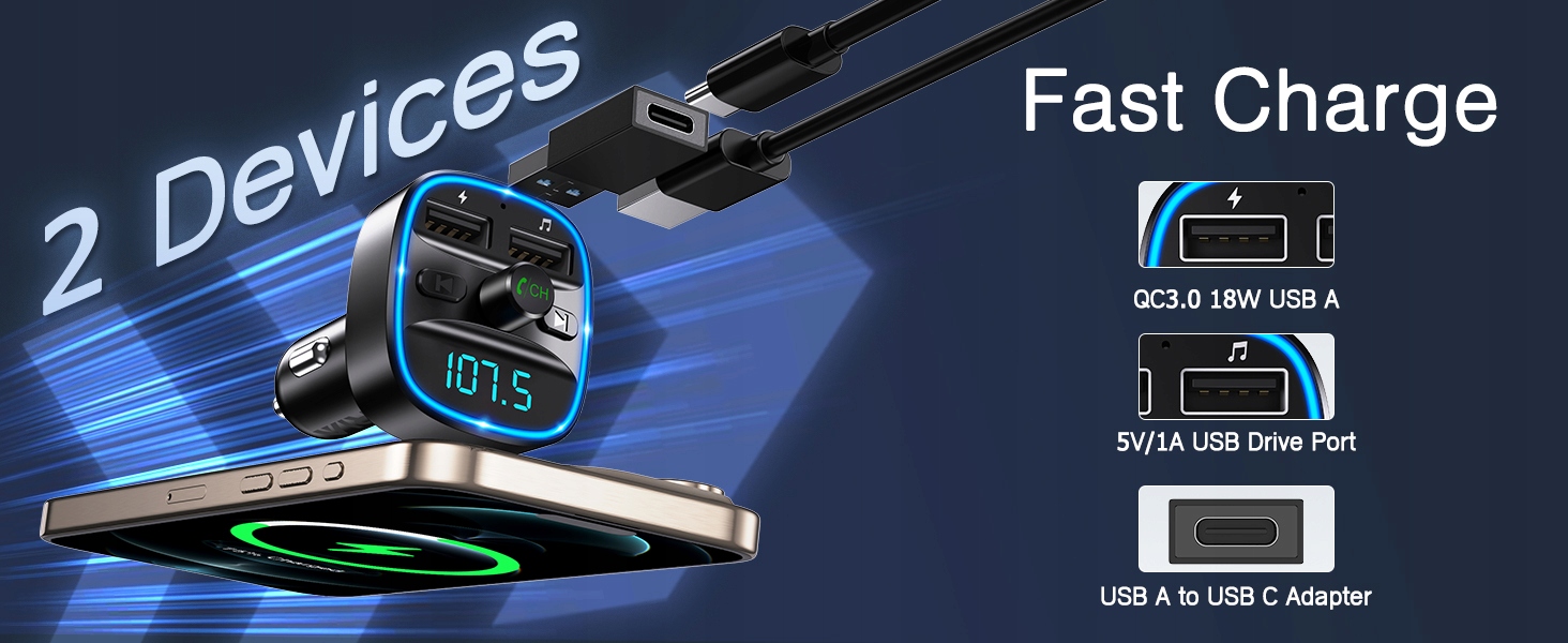 , оснащенные двумя портами USB (5V/2,4a + 5V/1a), передатчик позволяет заряжать смартфон и, например, навигация одновременно. Увеличивает совместимость с новыми устройствами.