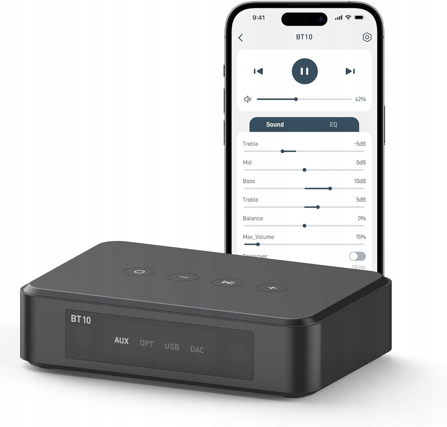 - 【Несколько аудиоинтерфейсов】BT10 поддерживает оптический вход (цифровой сигнал), линейный вход (аналоговый сигнал), вход USB и ЦАП, которые можно адаптировать к различным типам аудиоустройств. Источник звука можно подключить по беспроводной сети к устройству Bluetooth (например, наушникам Bluetooth, динамикам Bluetooth) через BT10.