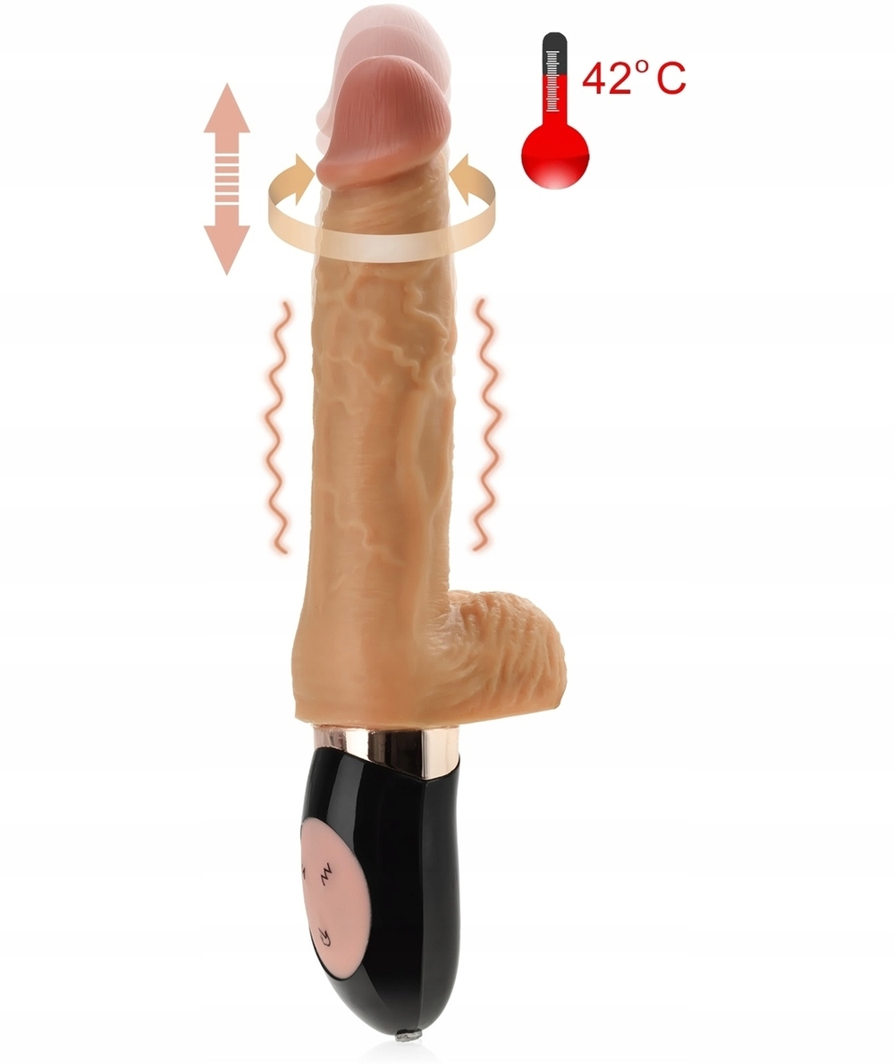 Вибратор для женщин с вращательным и скользящим движением, вибрацией и интеллектуальной функцией нагрева до 42 градусов Цельсия. Вибратор состоит из удобной ручки из ABS с силиконовыми элементами и гелевого фаллоимитатора, изготовленного с вниманием к каждой детали мужского члена. Стройный пенис легко скользит во влагалище, тщательно лаская его вибрациями, вращательными движениями вверх и вниз. Вибратор имеет 6 функций вращения и скольжения и 10 функций вибрации и пульсации. Функции можно использовать по отдельности или свободно комбинировать, что дает вам 60 удобных конфигураций. Вращательные и скользящие движения, массирующие все влагалище, вибрация, расположенная в верхней части полового члена, и приятное, расслабляющее тепло, наполняющее влагалище изнутри, приведут вас к оргазму всего за несколько мгновений, обеспечивая при этом максимально естественные ощущения. Вибратор интуитивно понятен, прост и удобен в использовании.